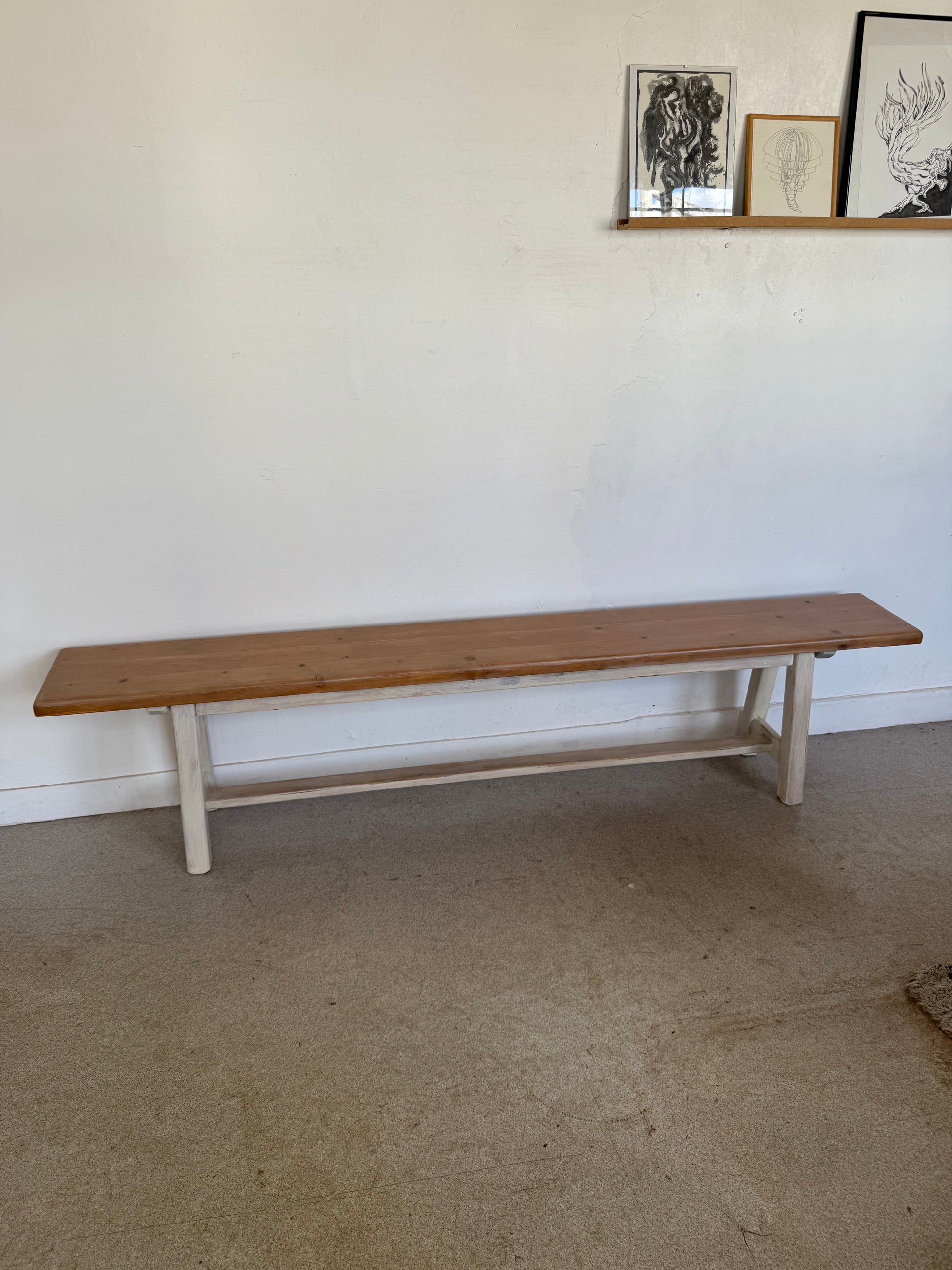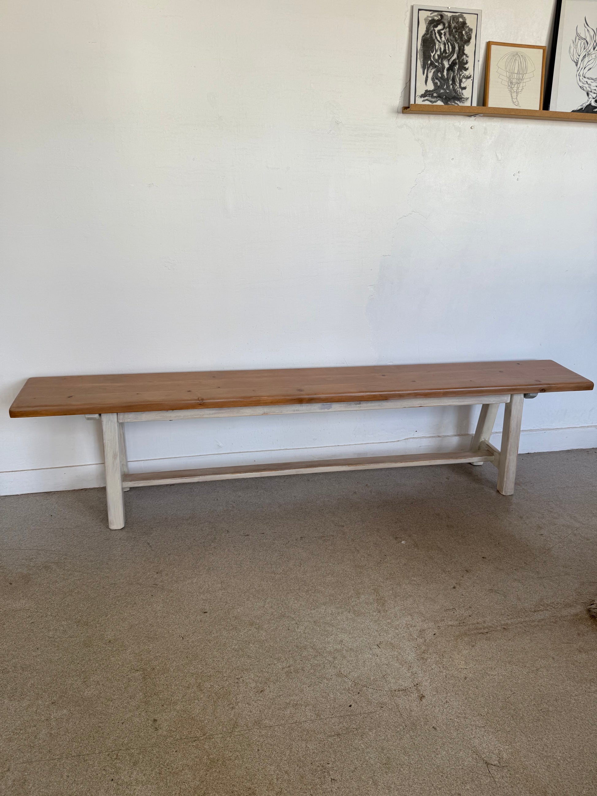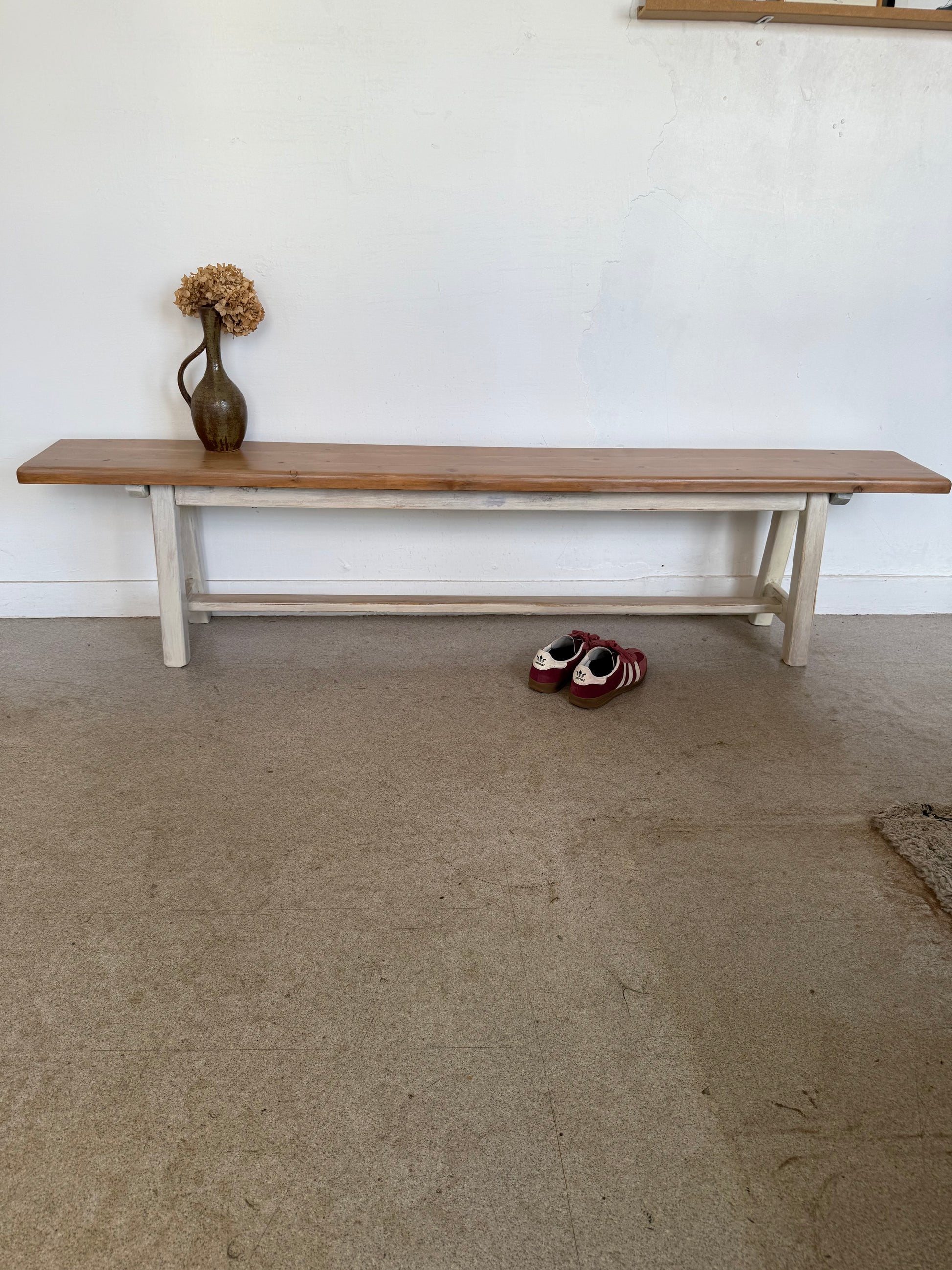 Banc de ferme en bois massif vintage