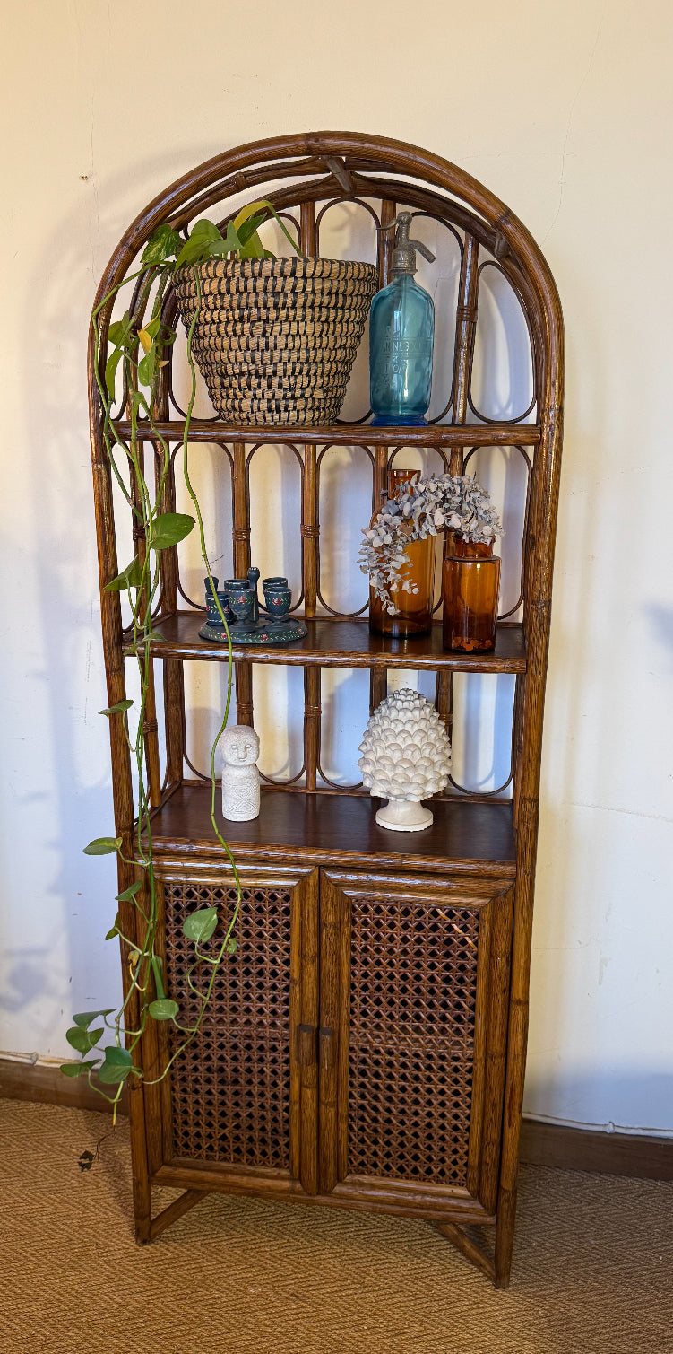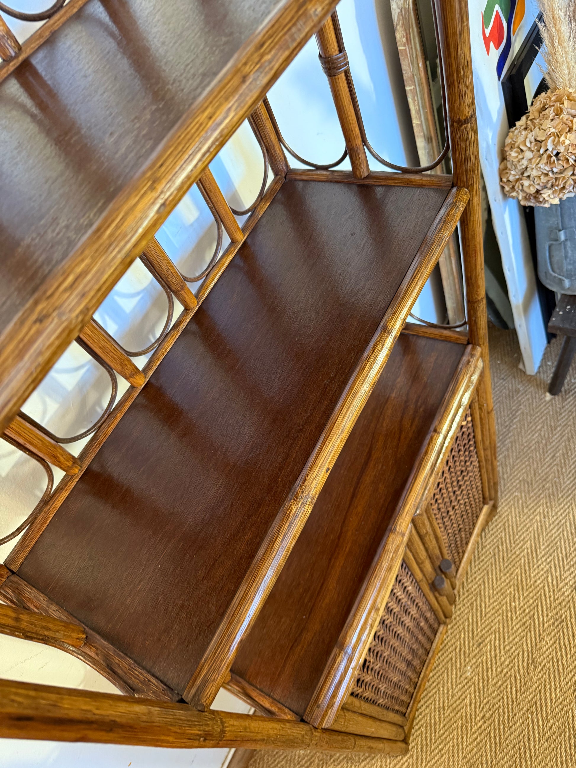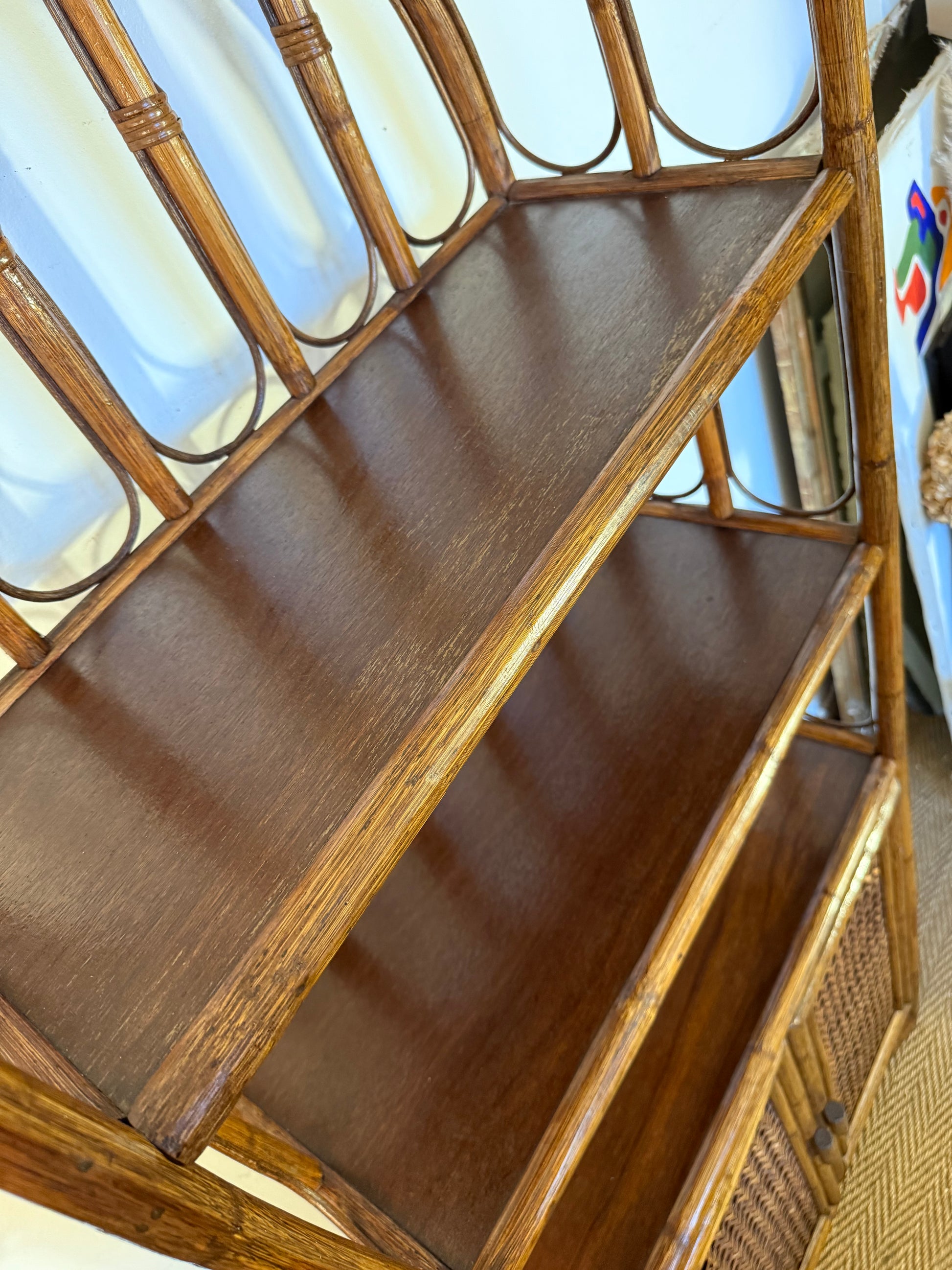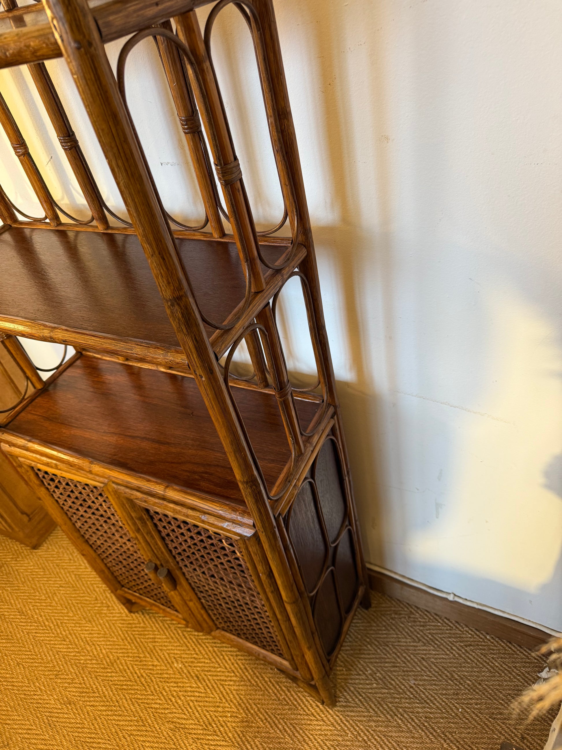 Jolie bibliothèque / étagère en rotin et cannage vintage, idéale dans une chambre, un salon, une entrée…