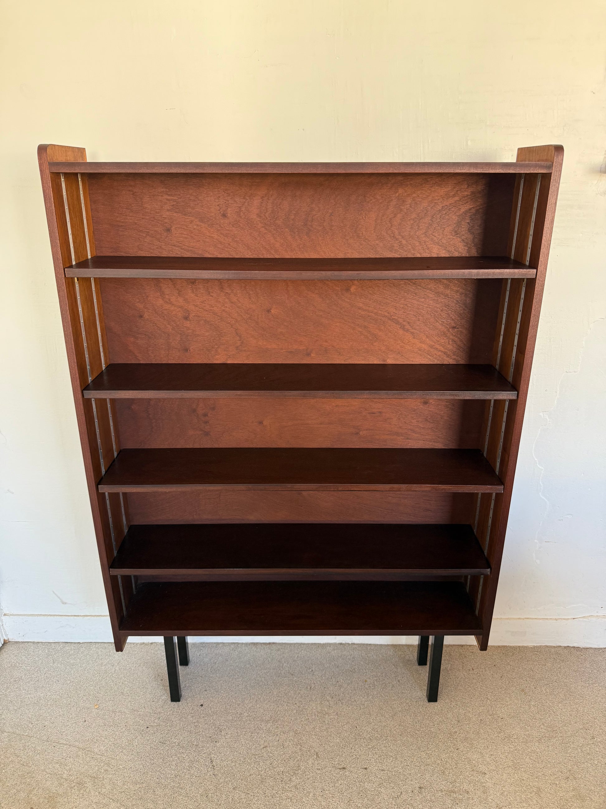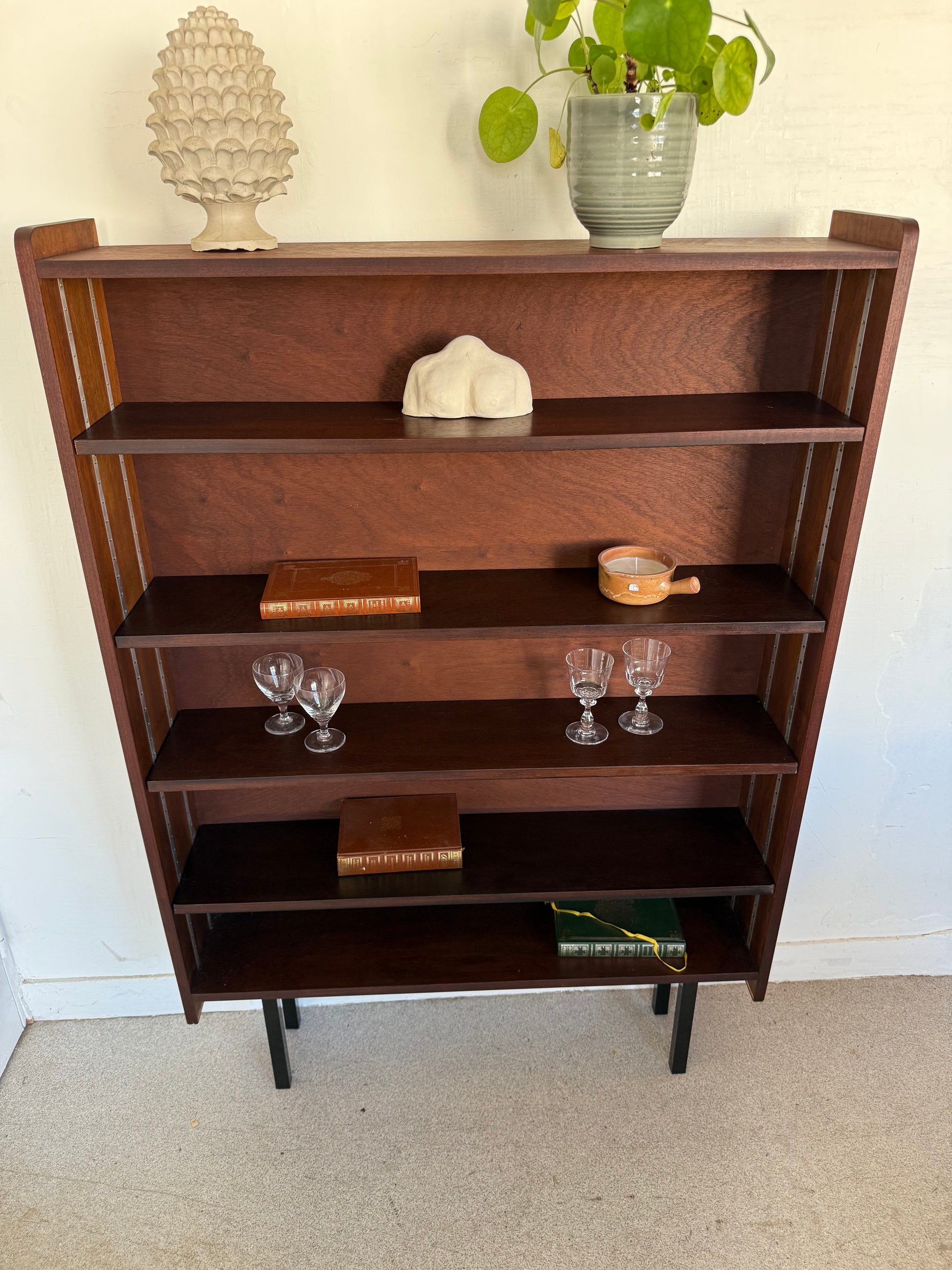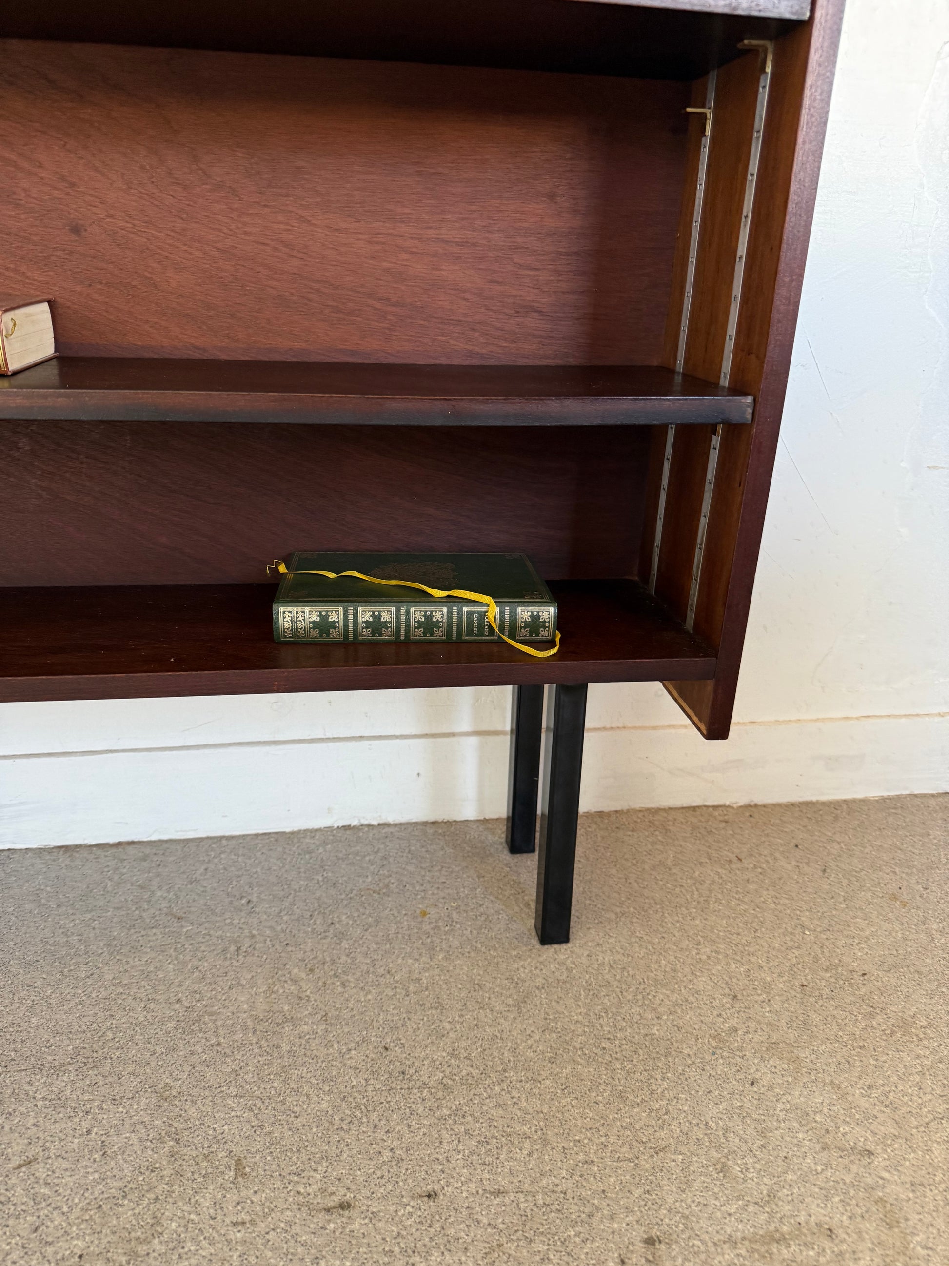 Très jolie étagère / bibliothèque vintage en placage et pied métal