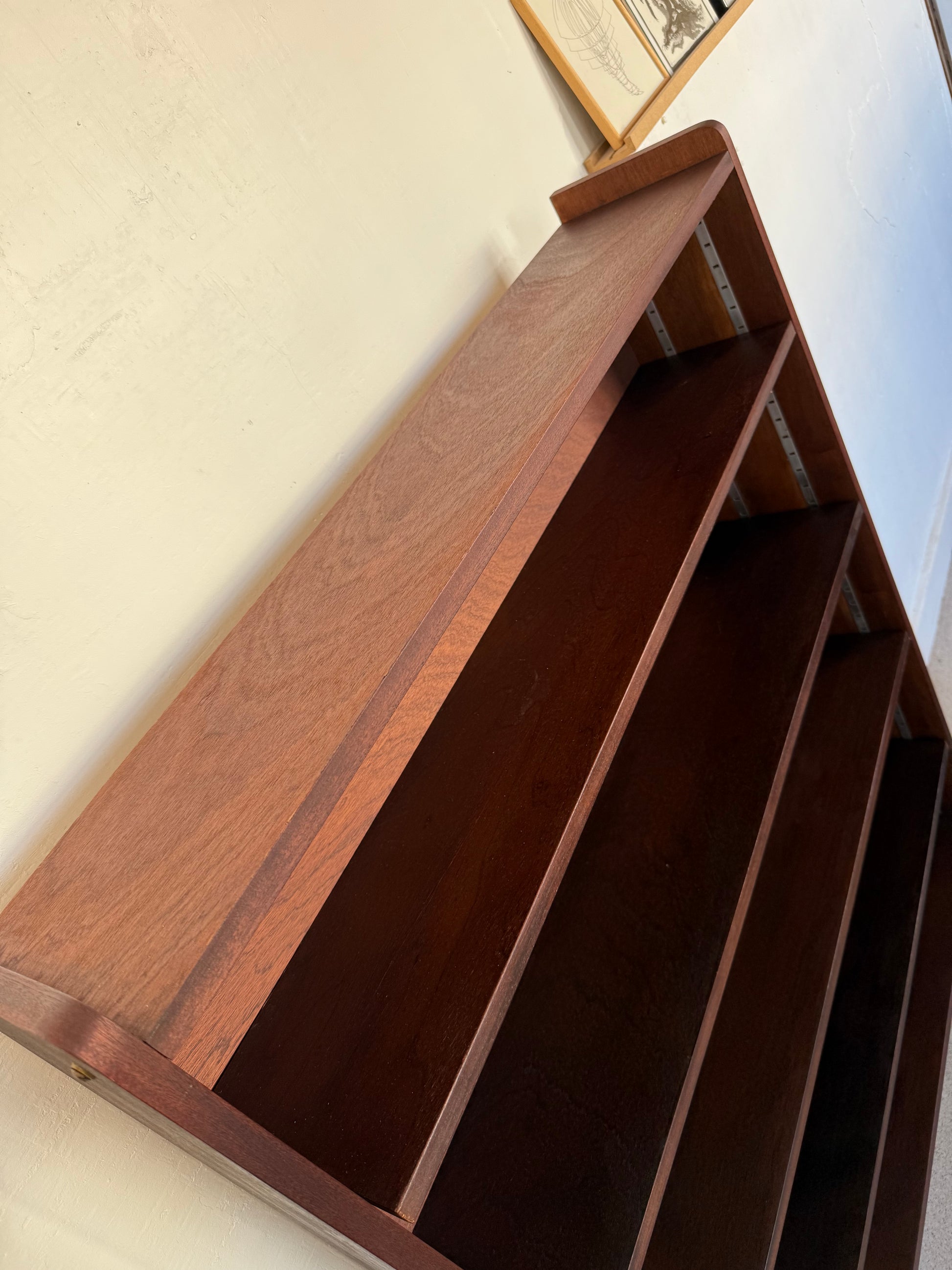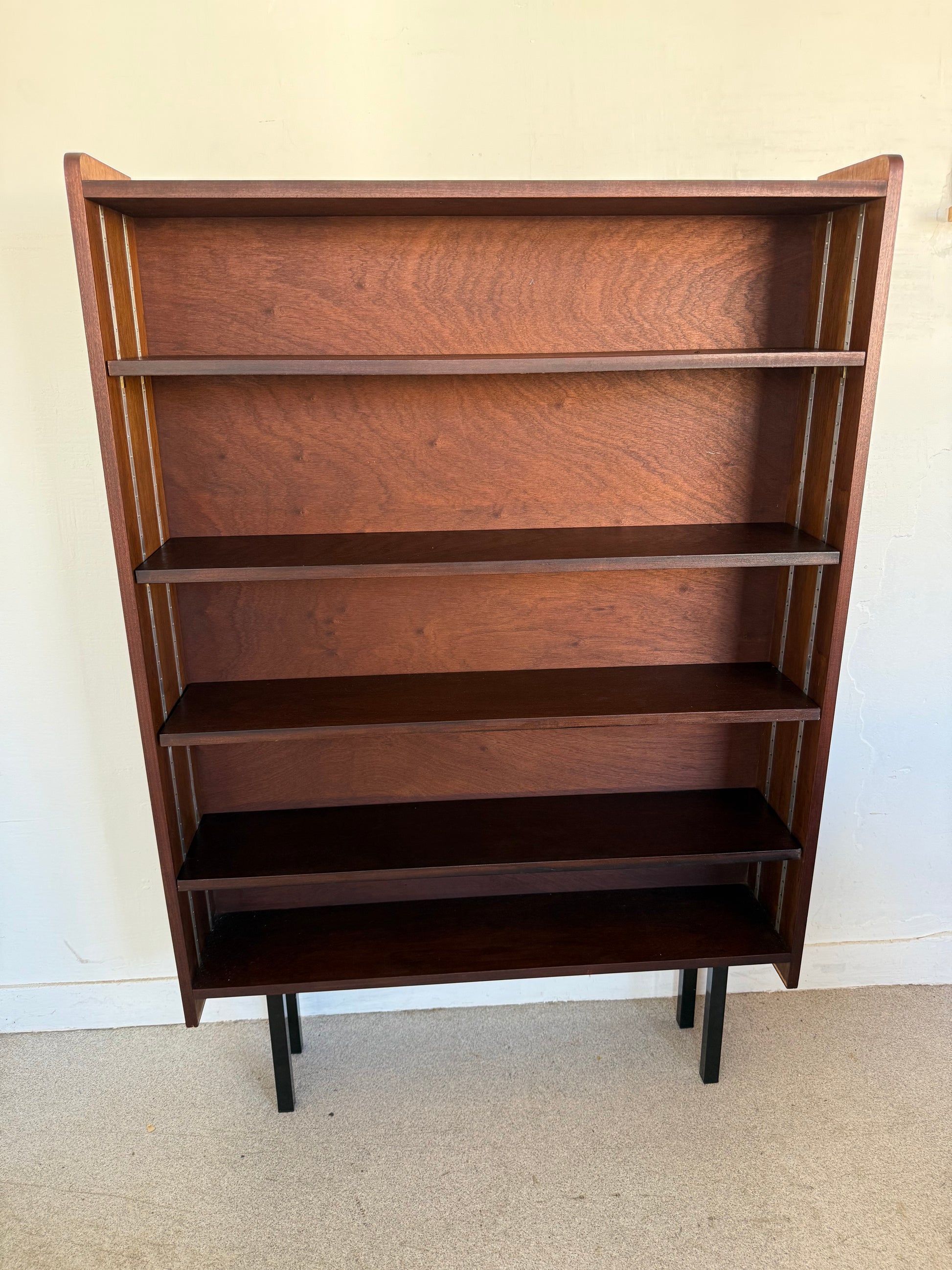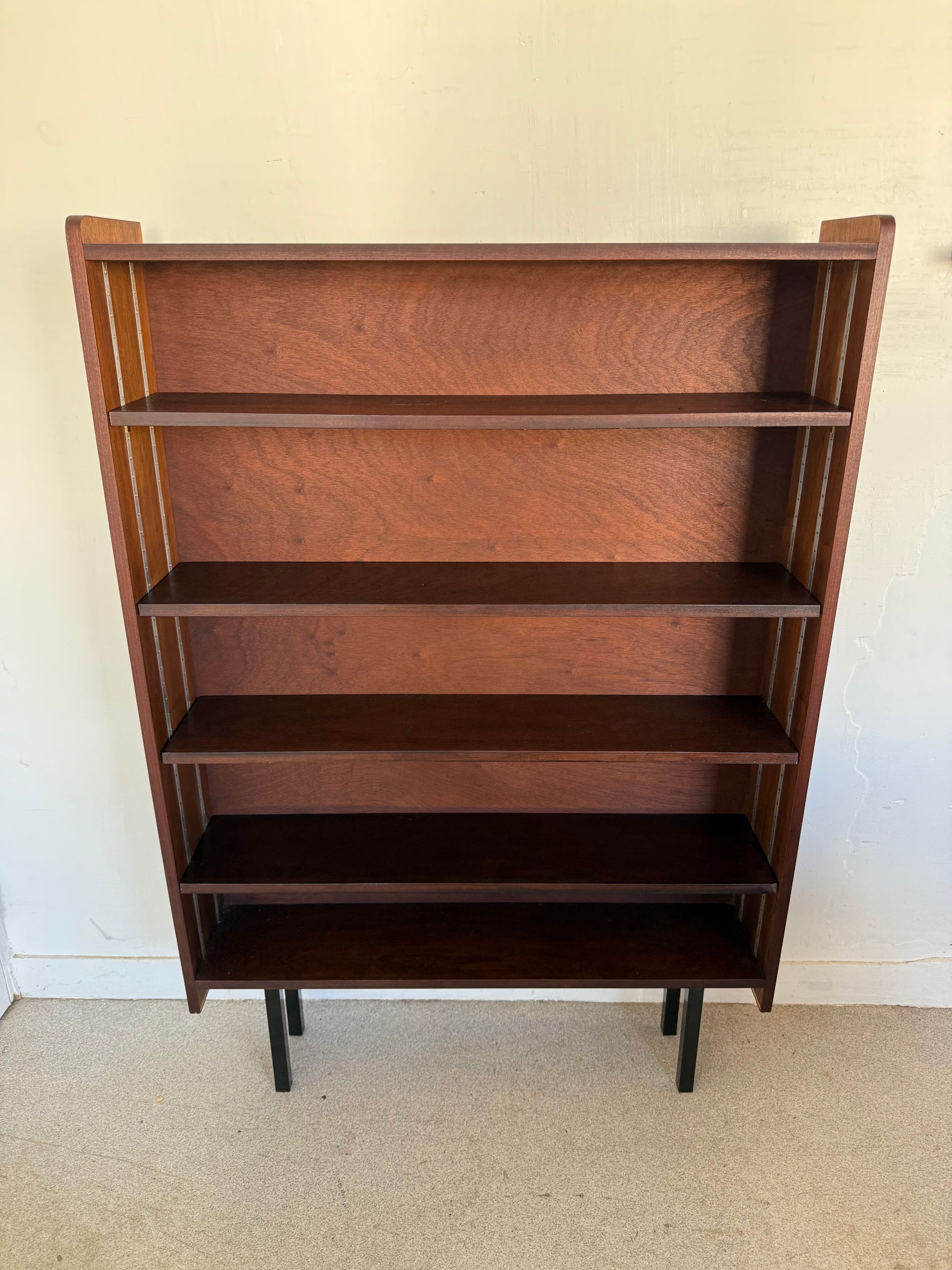 Très jolie étagère / bibliothèque vintage en placage et pied métal