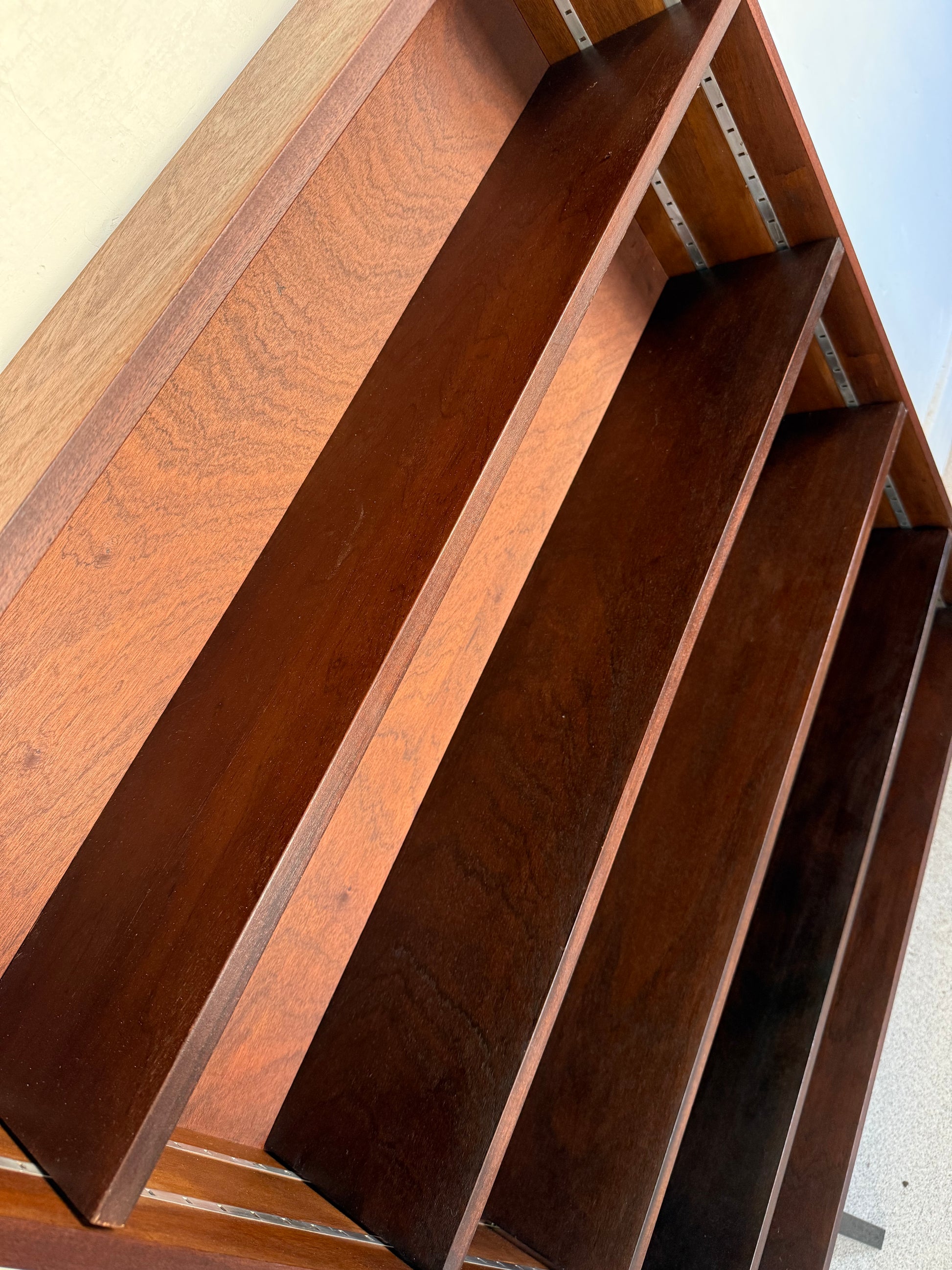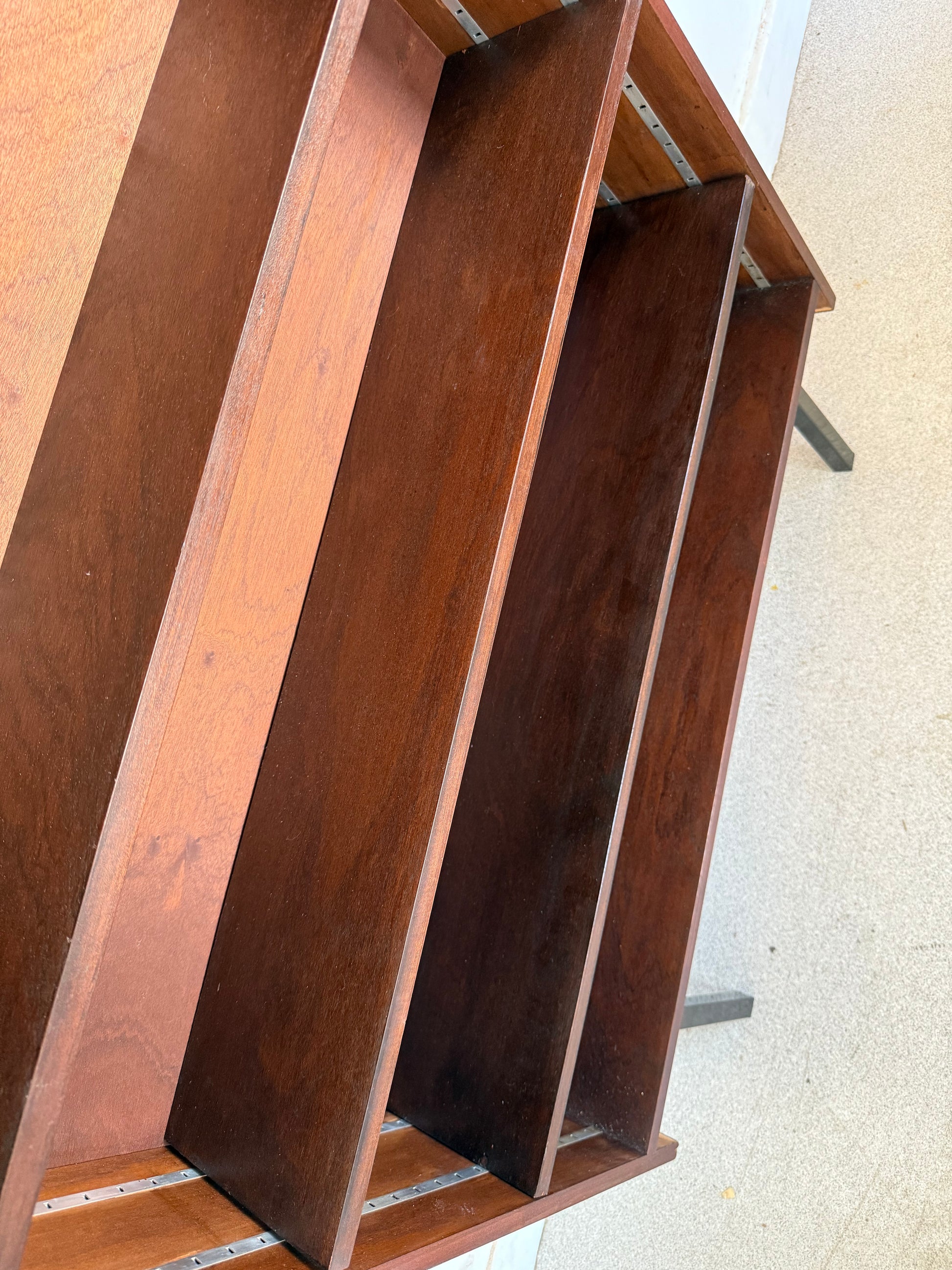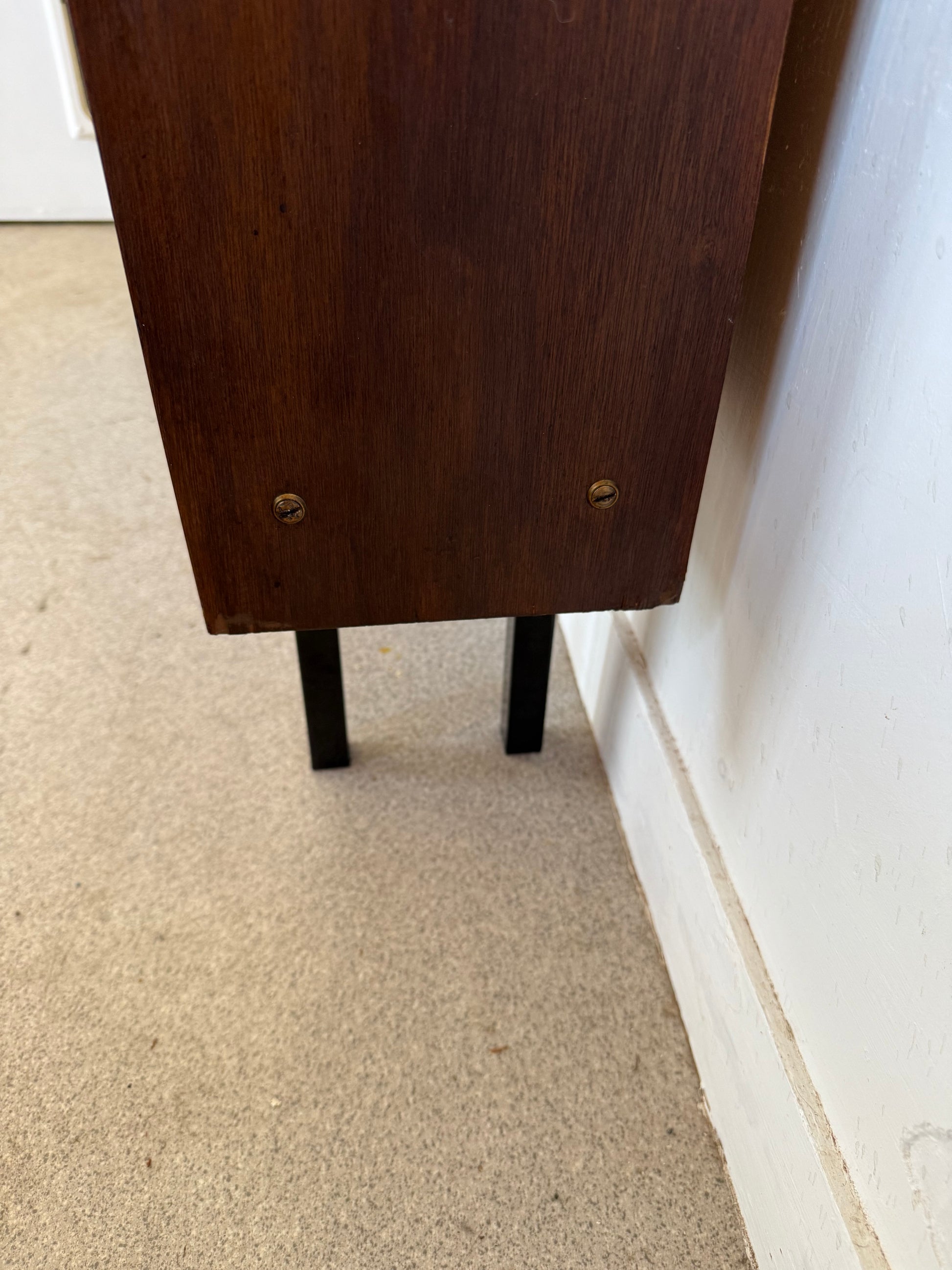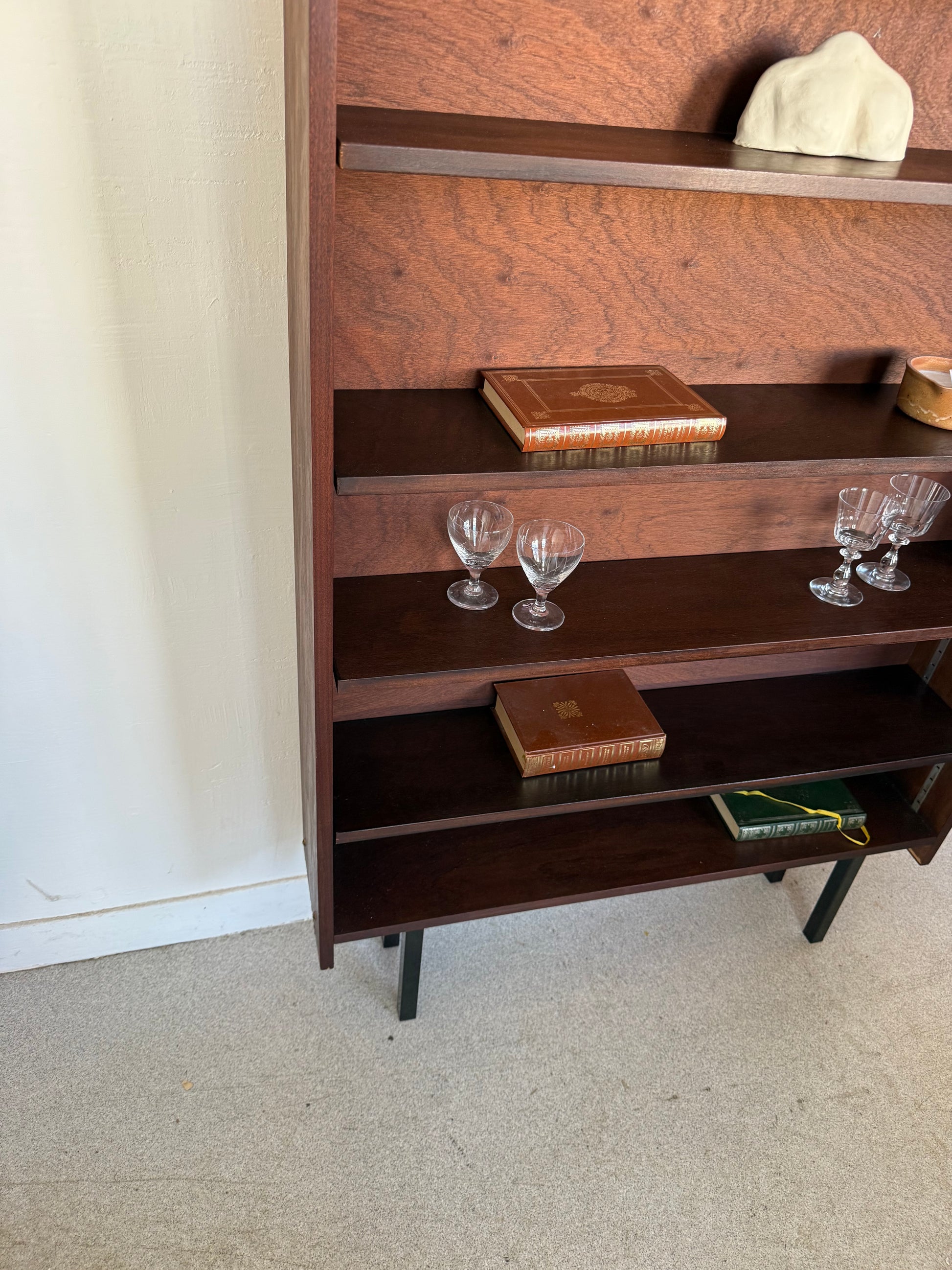 Bibliothèque étagère vintage placage et pied métal
