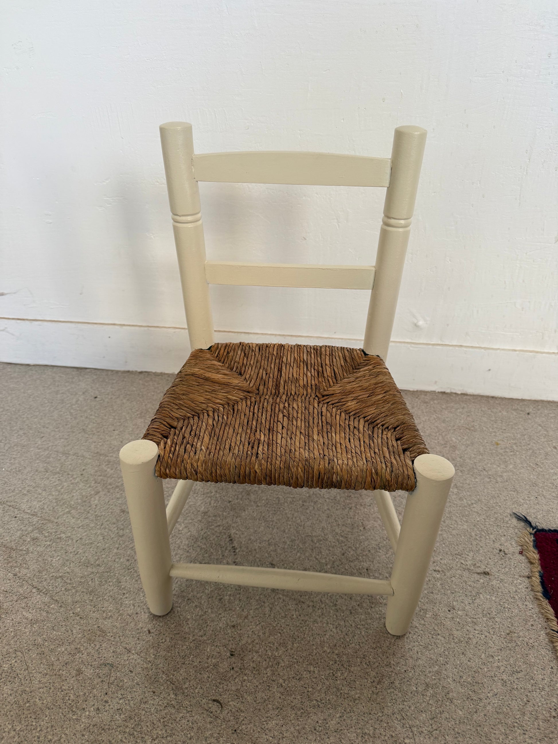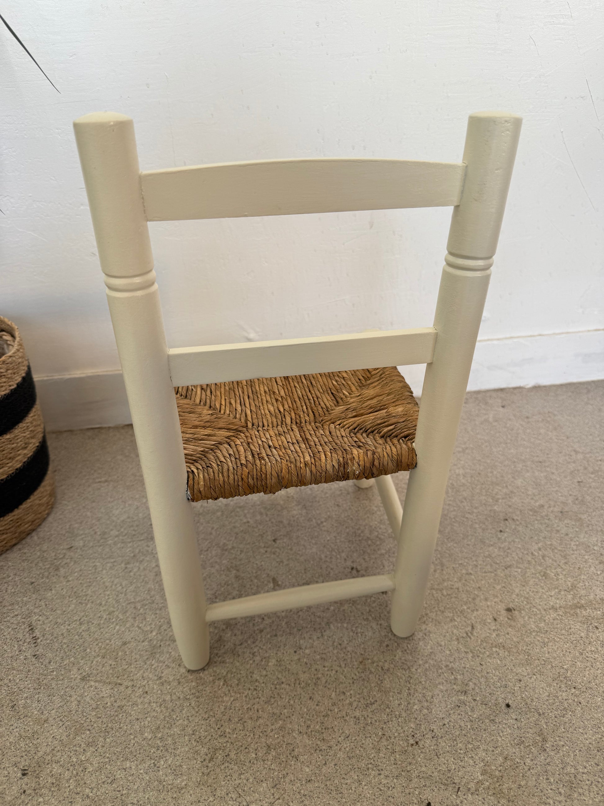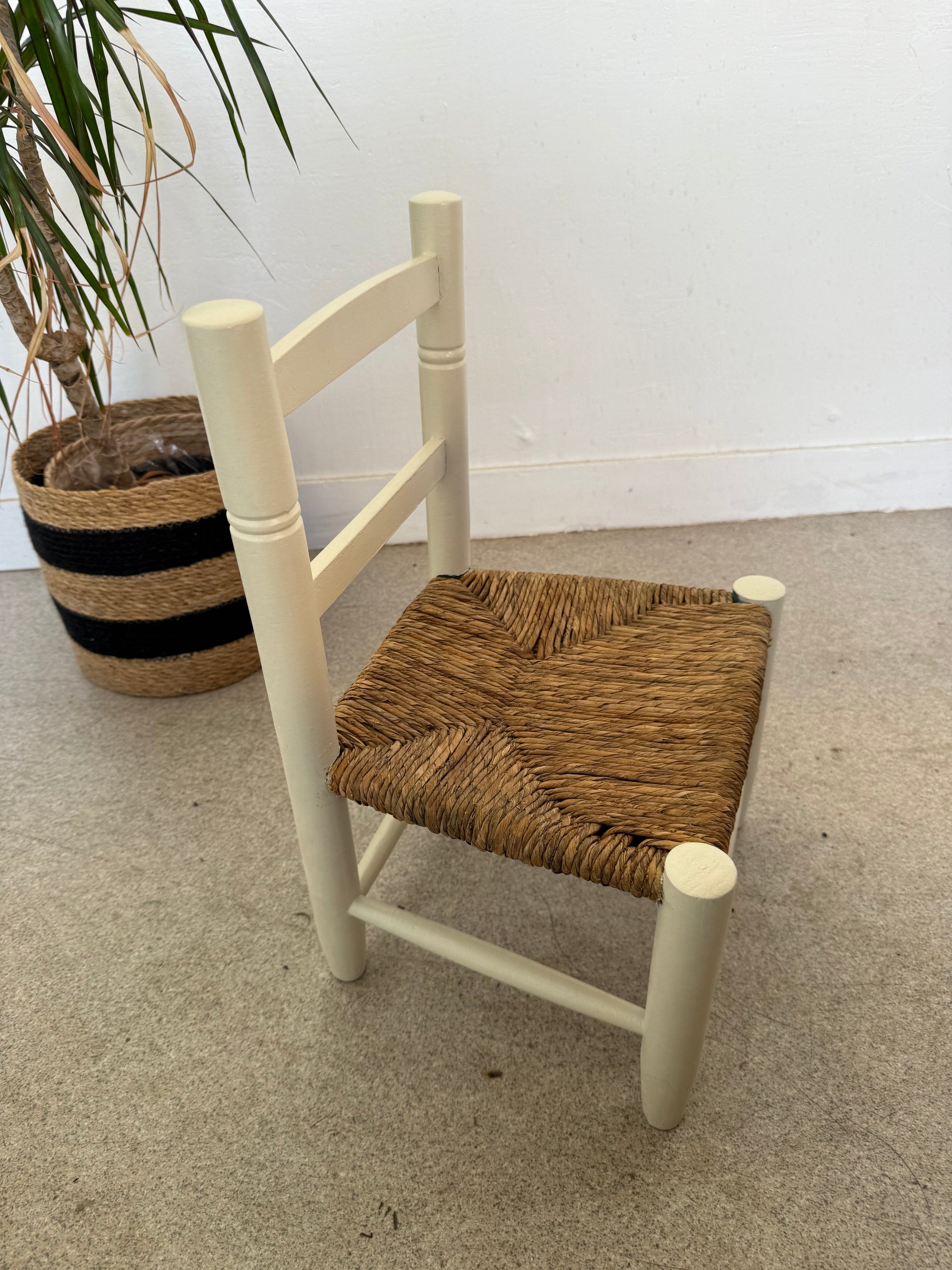 La chaise a été poncée et repeinte en blanc crème dans une peinture respectueuse de l’environnement et de qualité