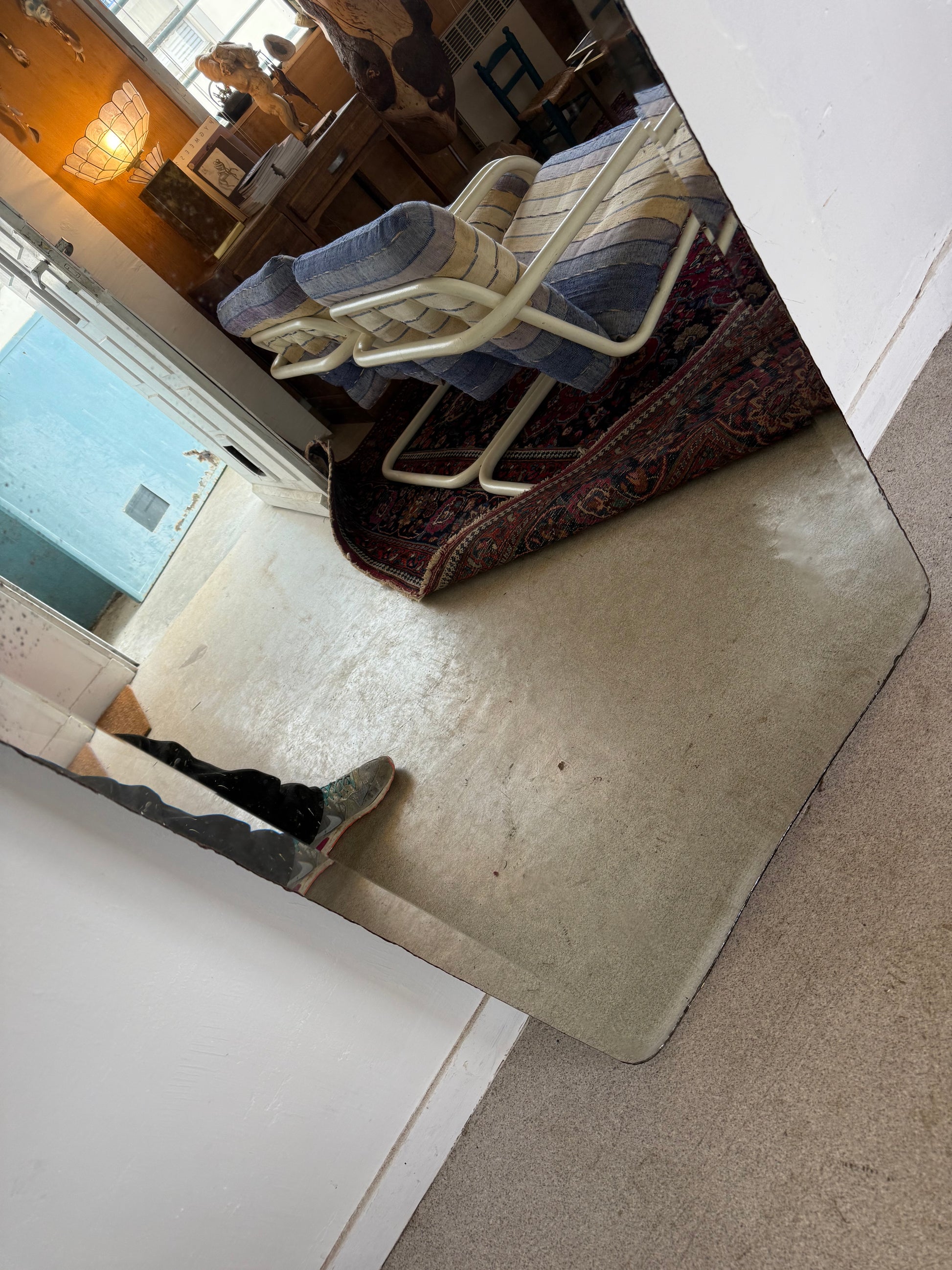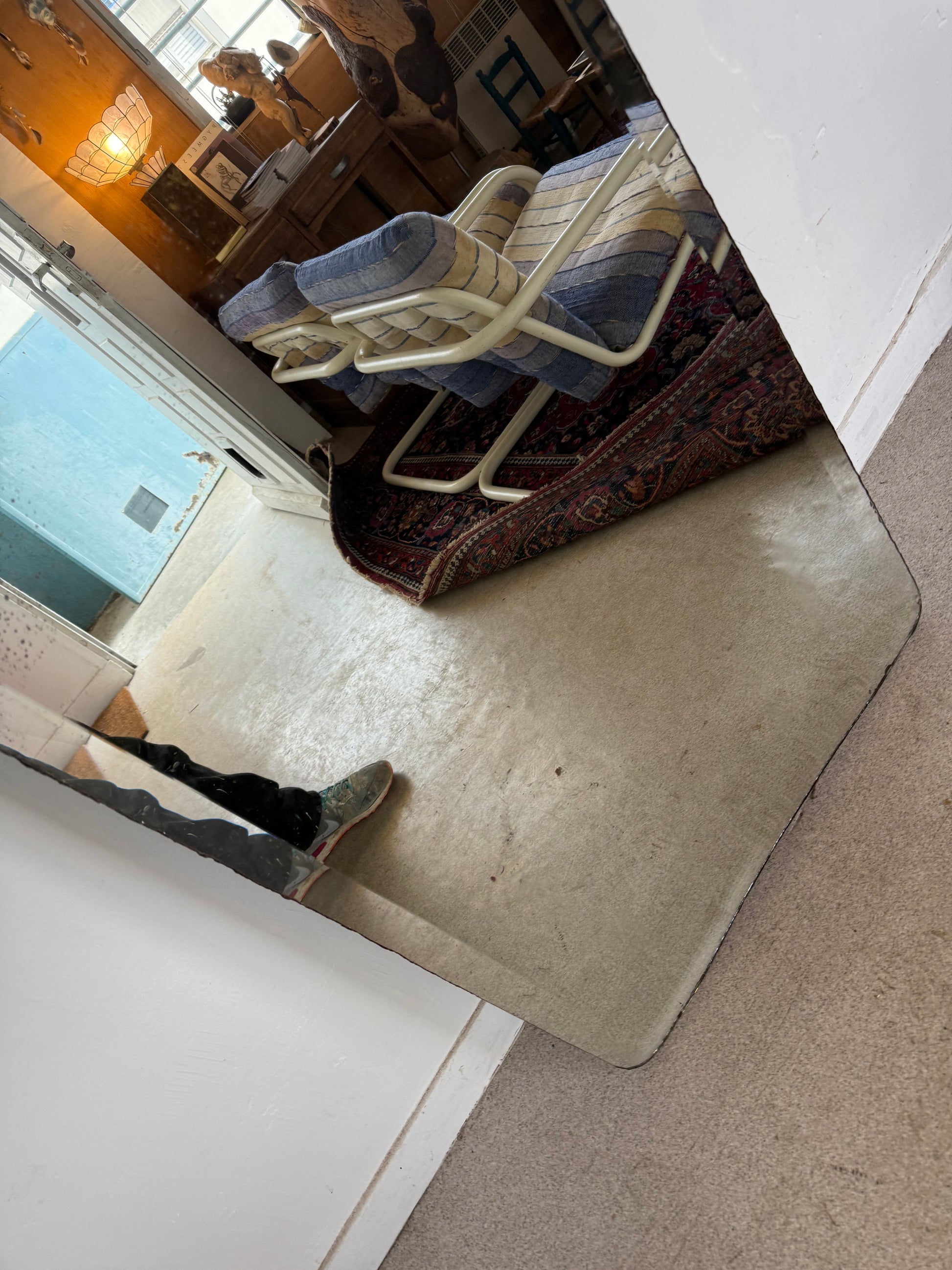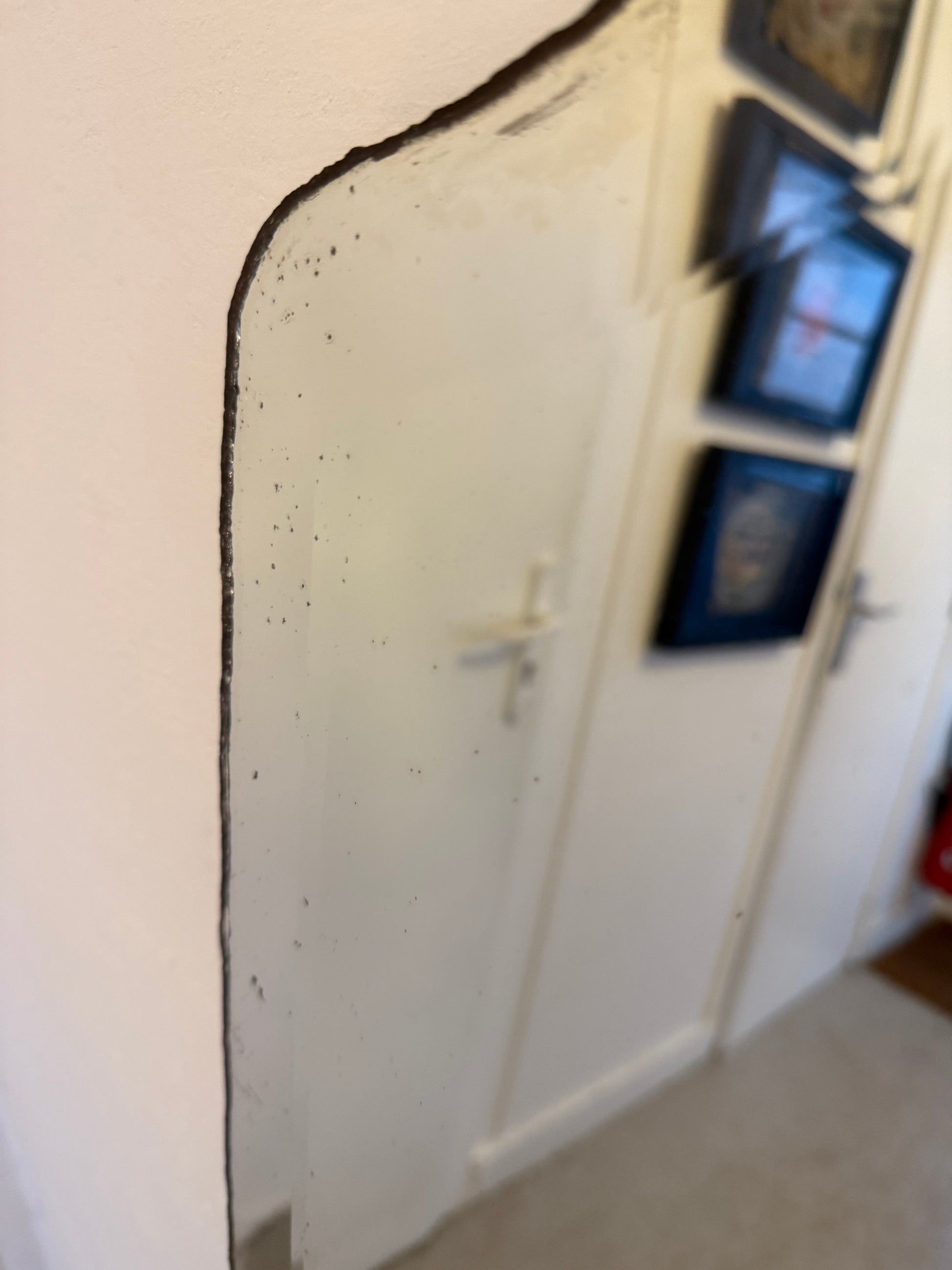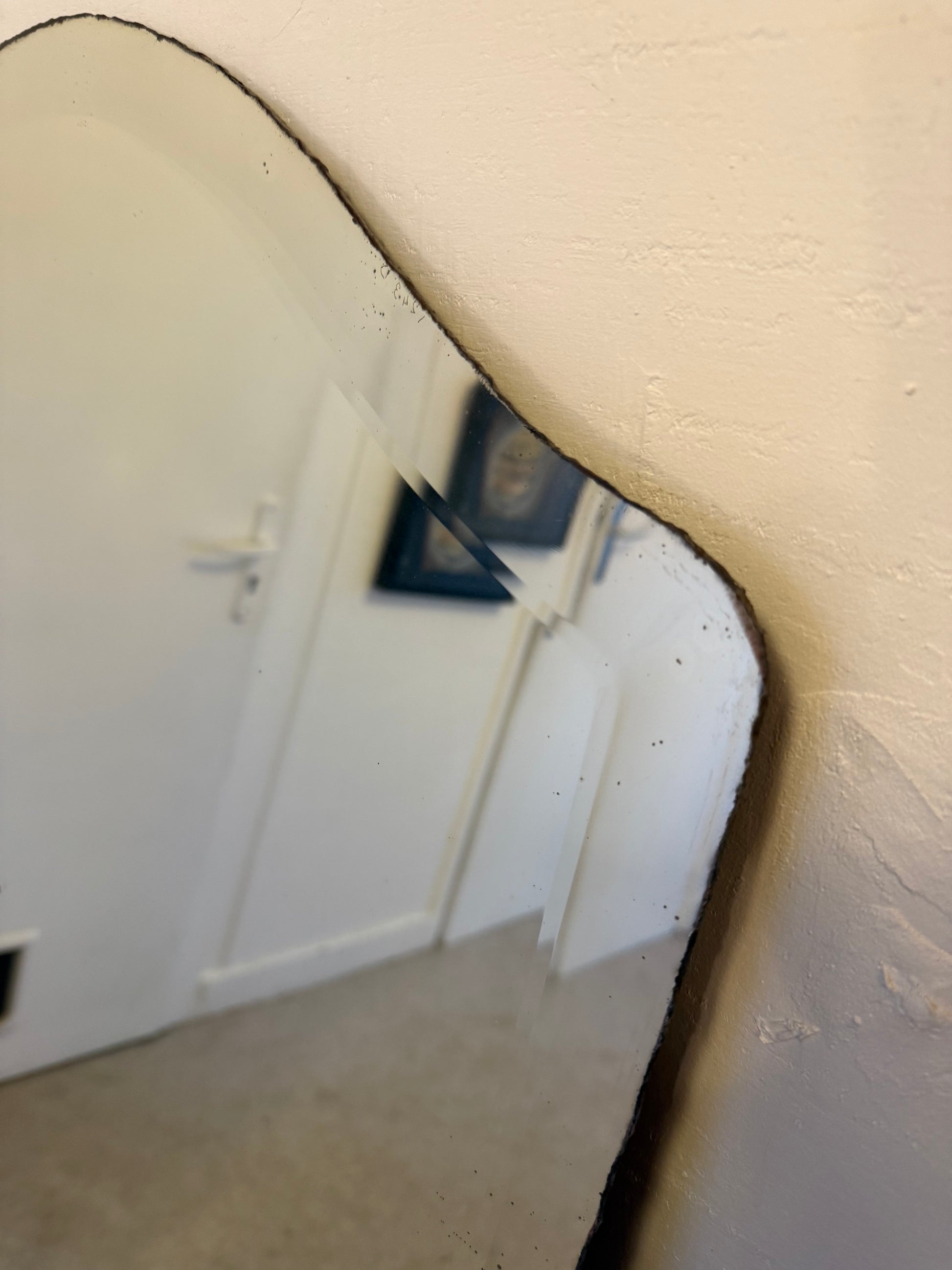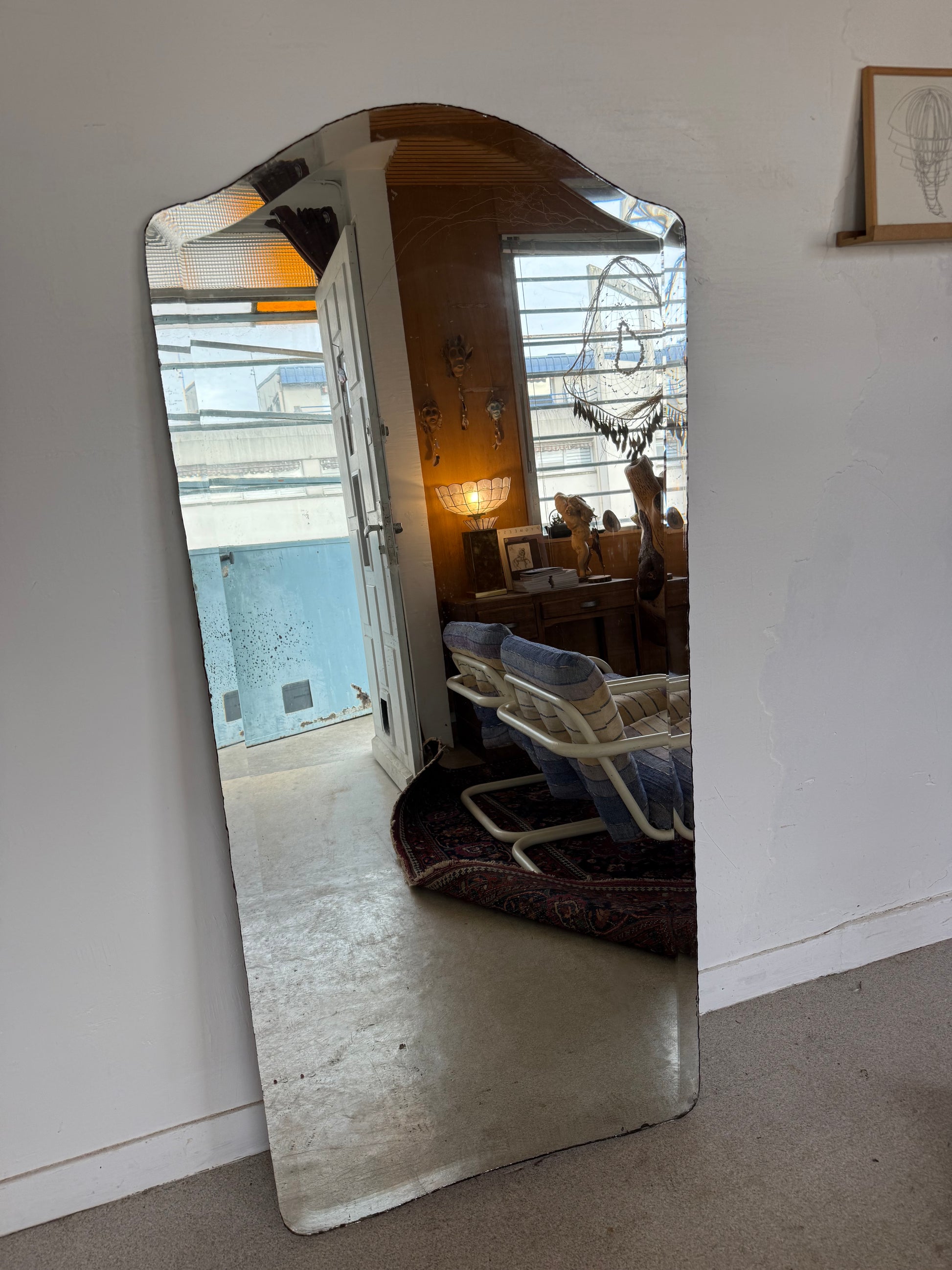 Beau miroir vintage avec sa glace biseautée ancienne à la découpe originale