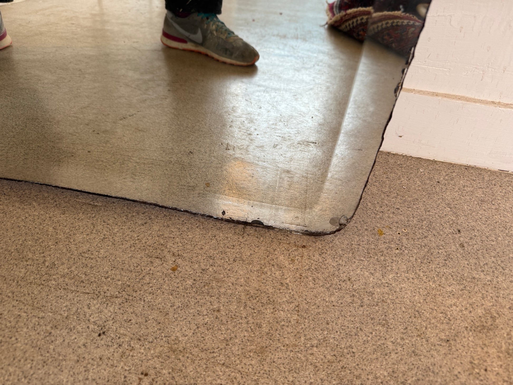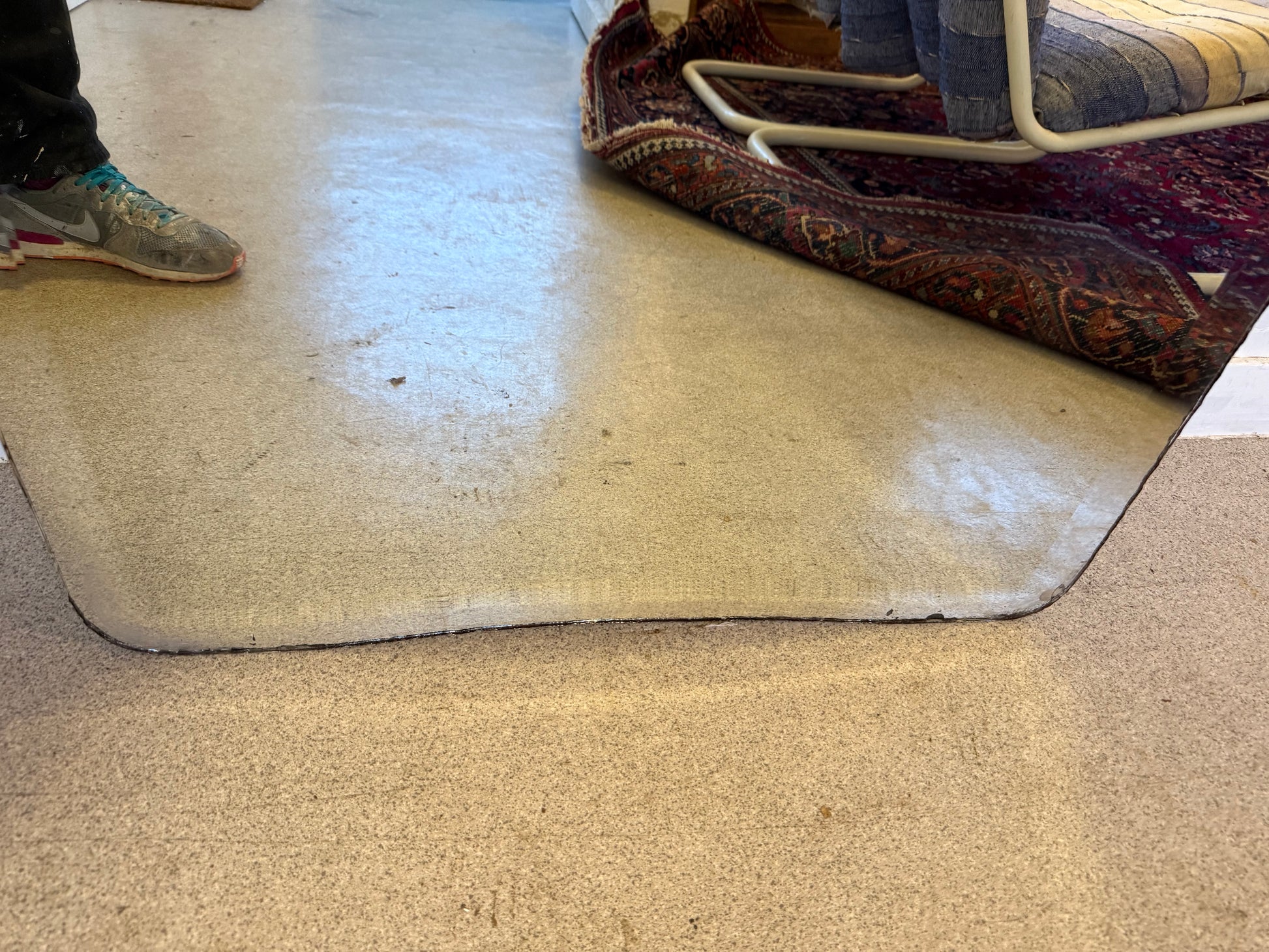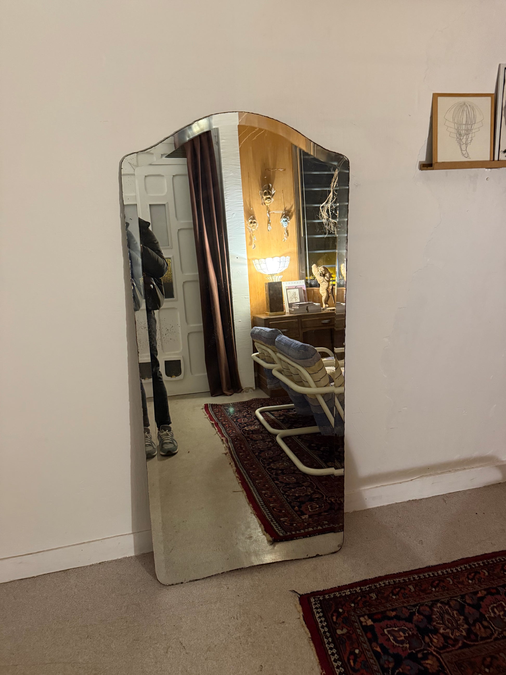 Attention le miroir est assez lourd. A poser pour se voir entièrement. Possibilité d'accrochage avec un système vendu en magasin de bricolage.