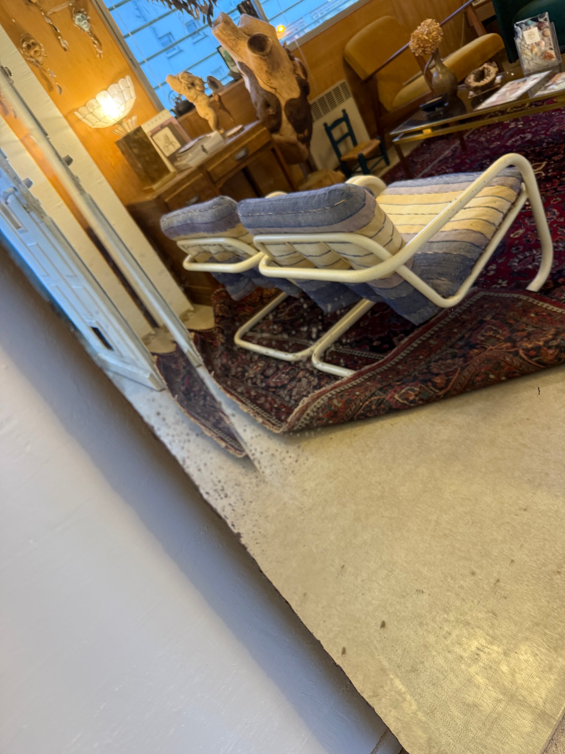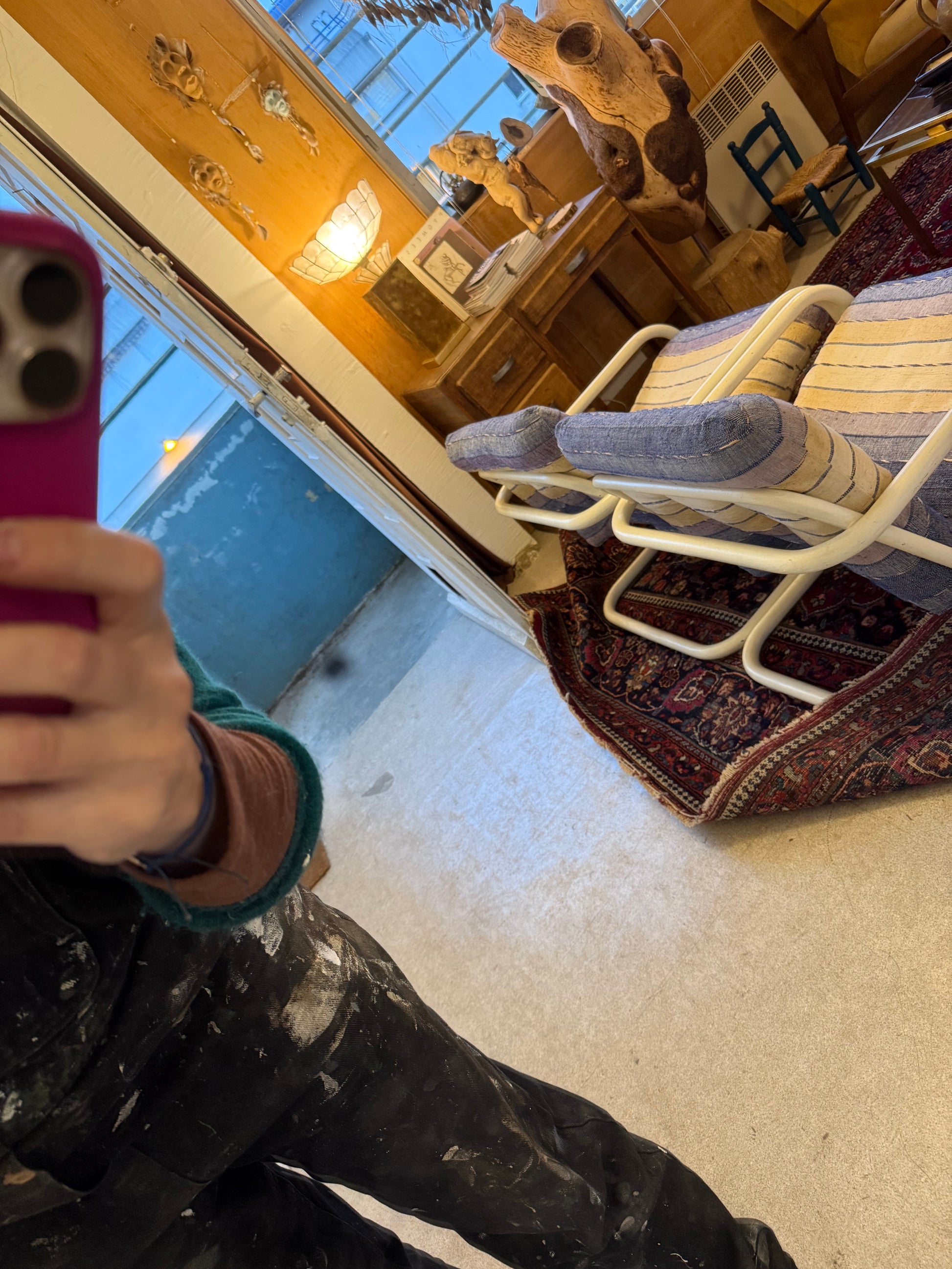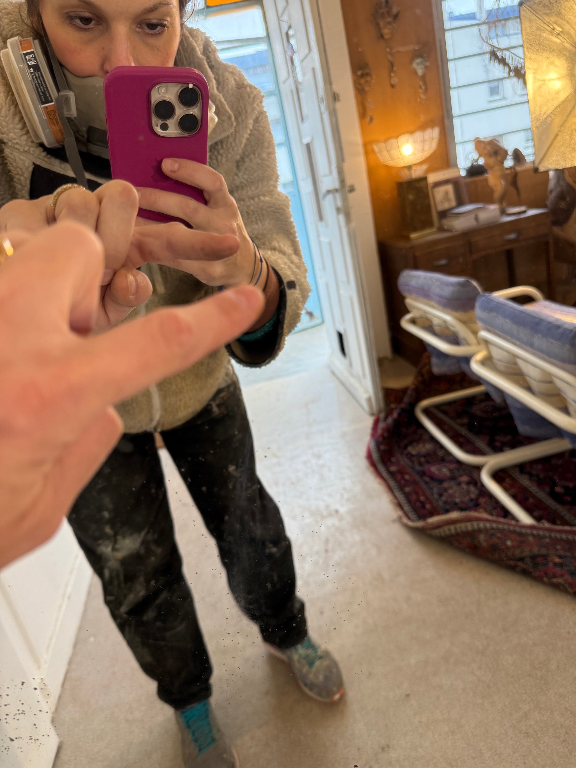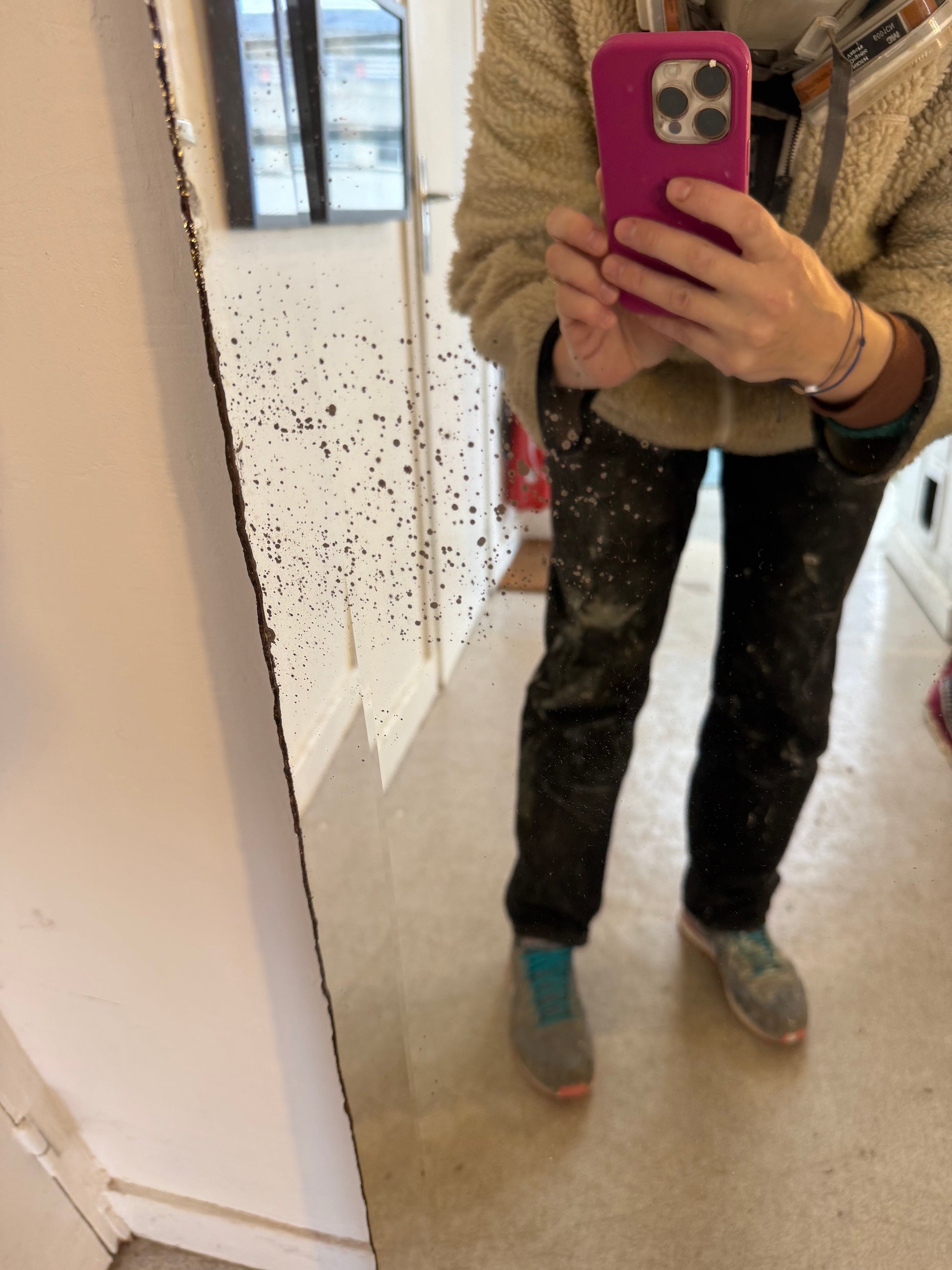 Attention le miroir est assez lourd. A poser pour se voir entièrement. Possibilité d'accrochage avec un système vendu en magasin de bricolage.