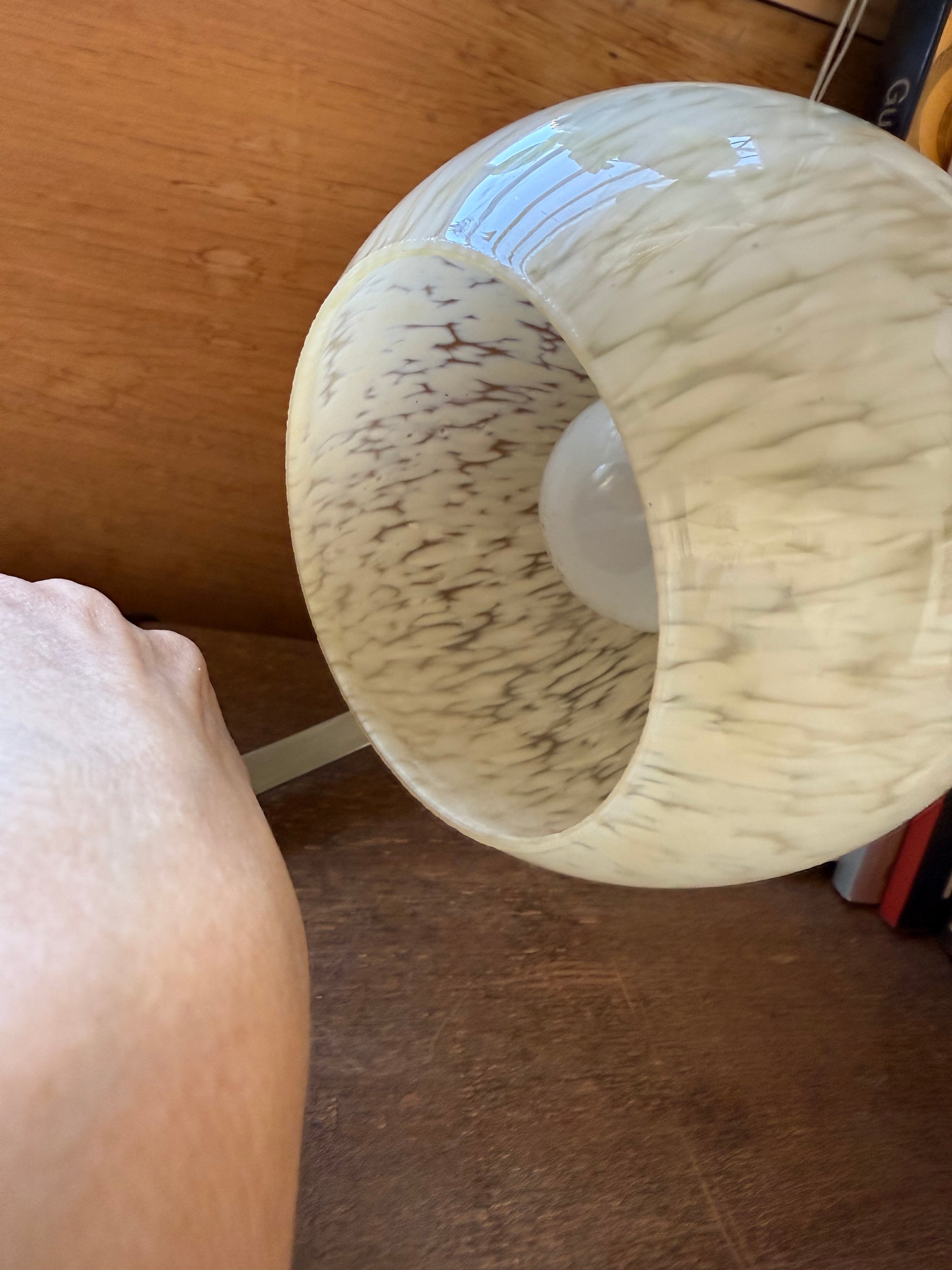 Très jolie lampe de chevet vintage de style art déco en bois et métal chromé avec son globe en verre de Clichy jaune pâle