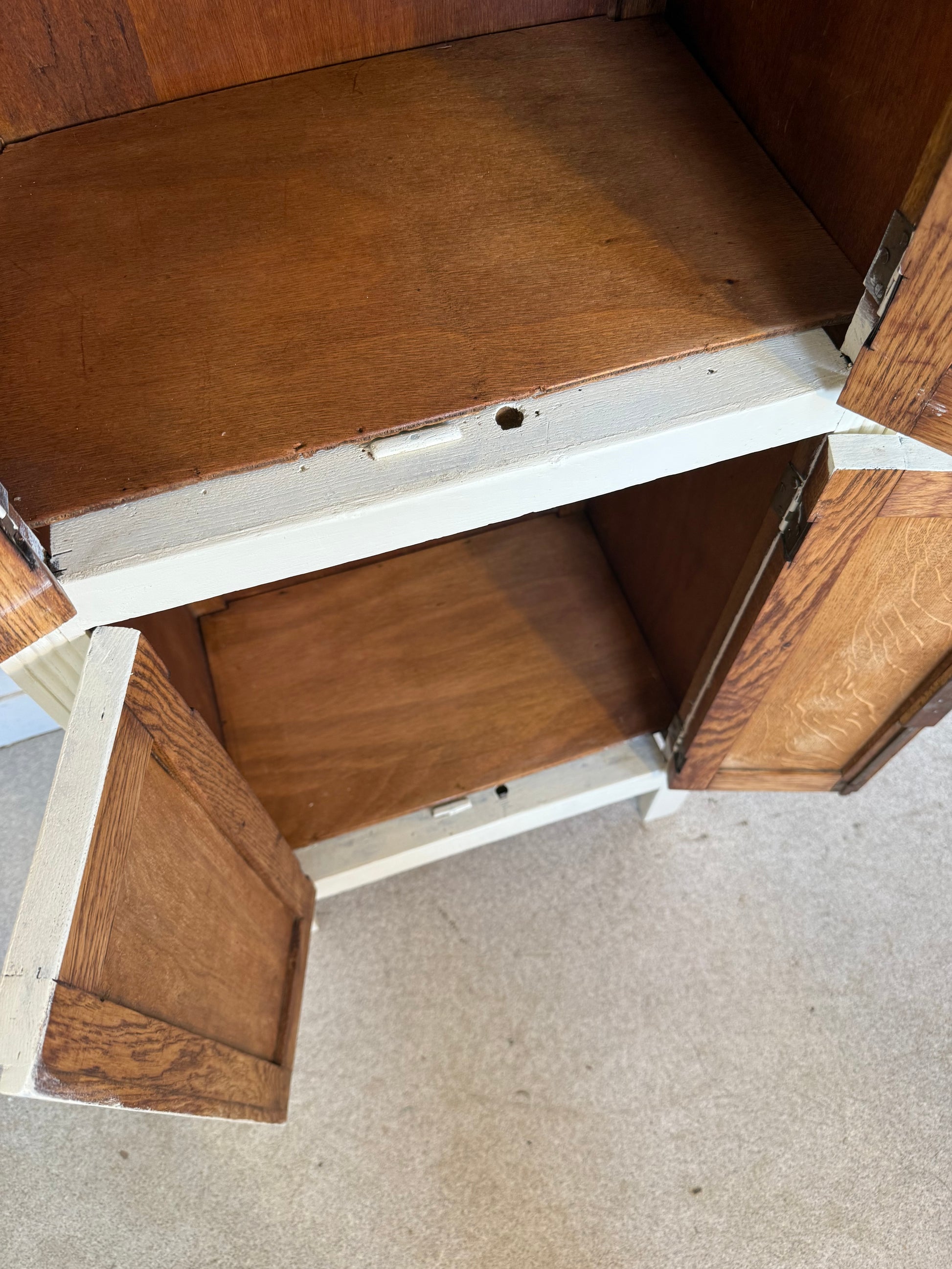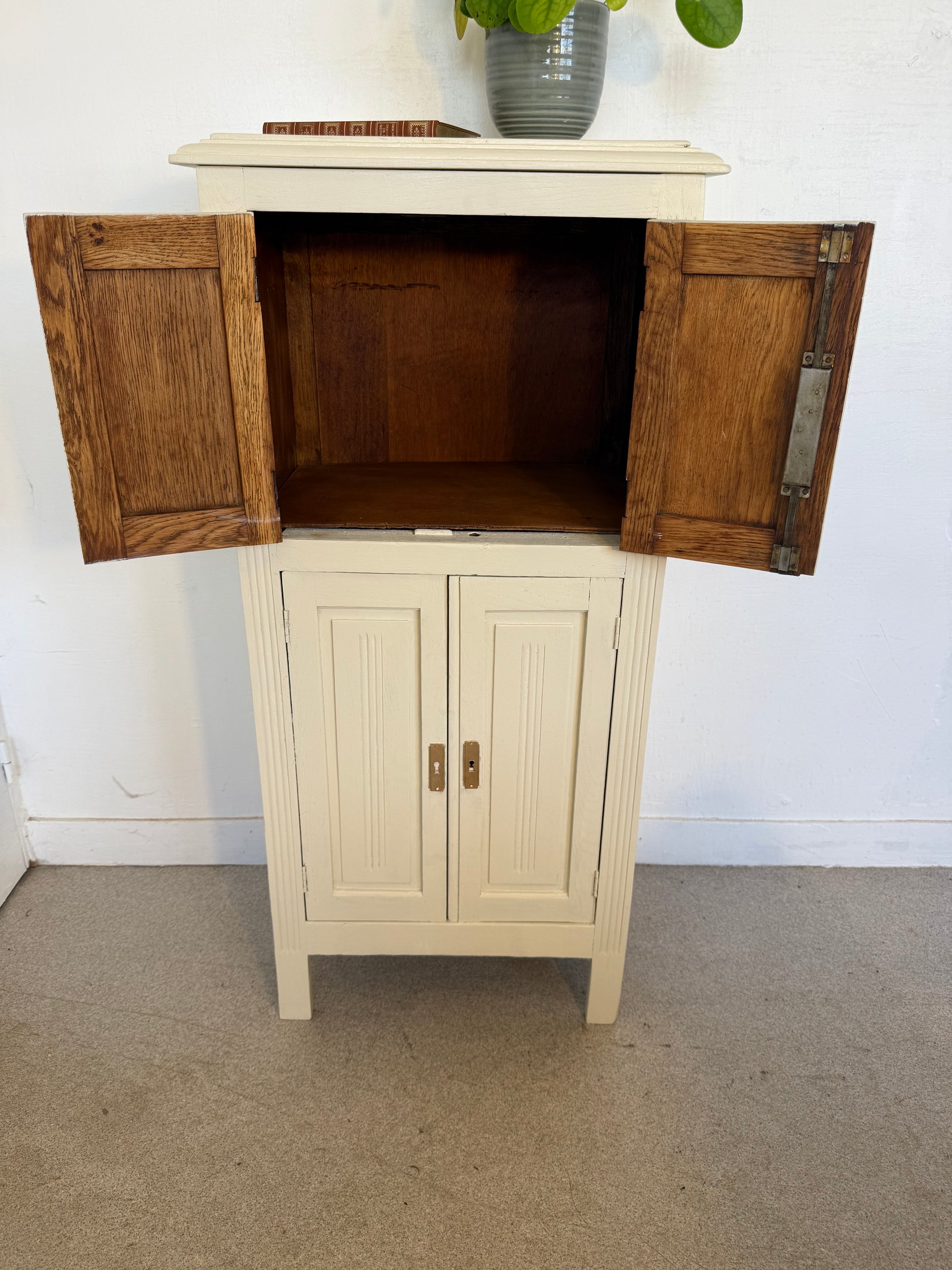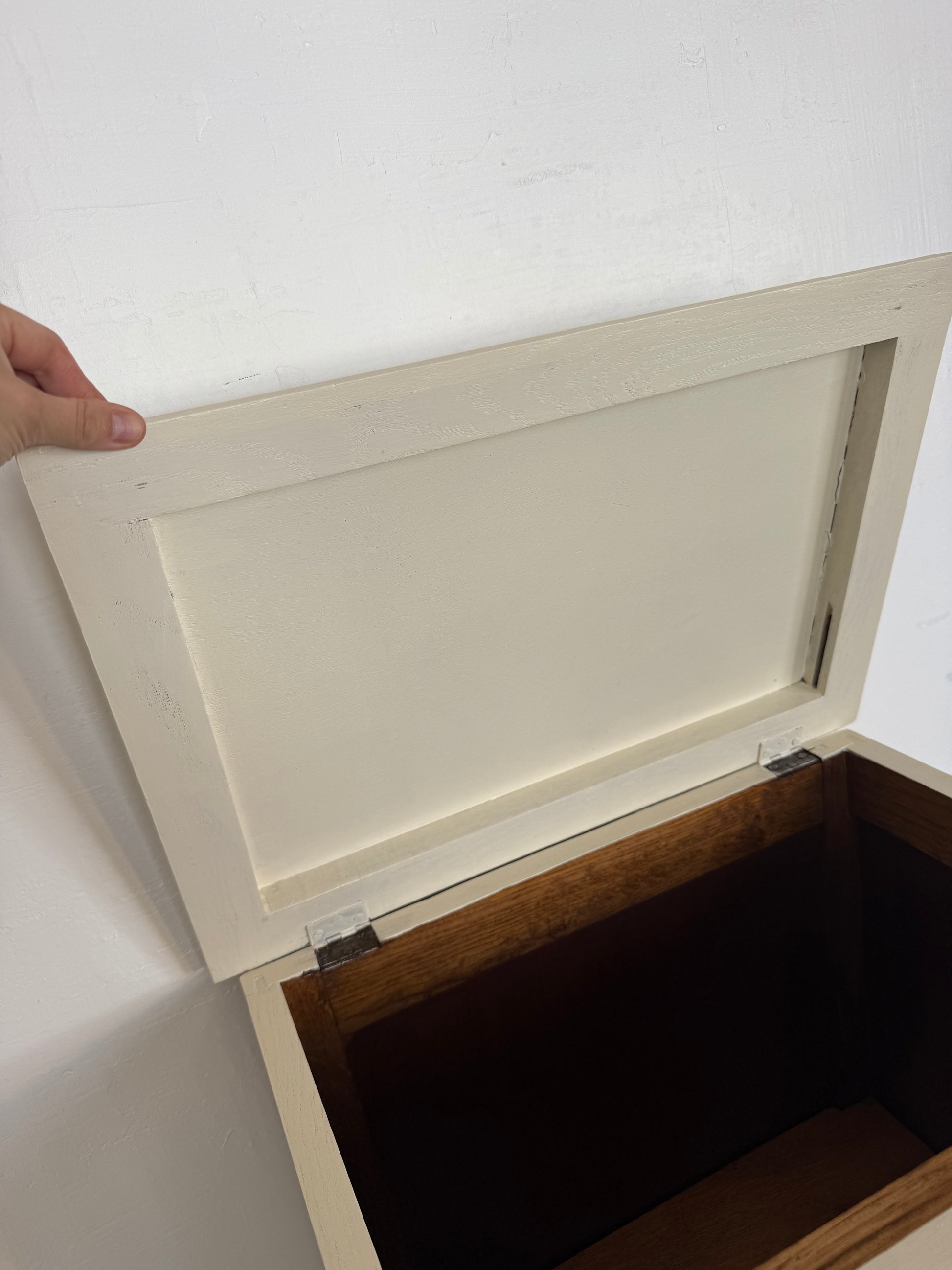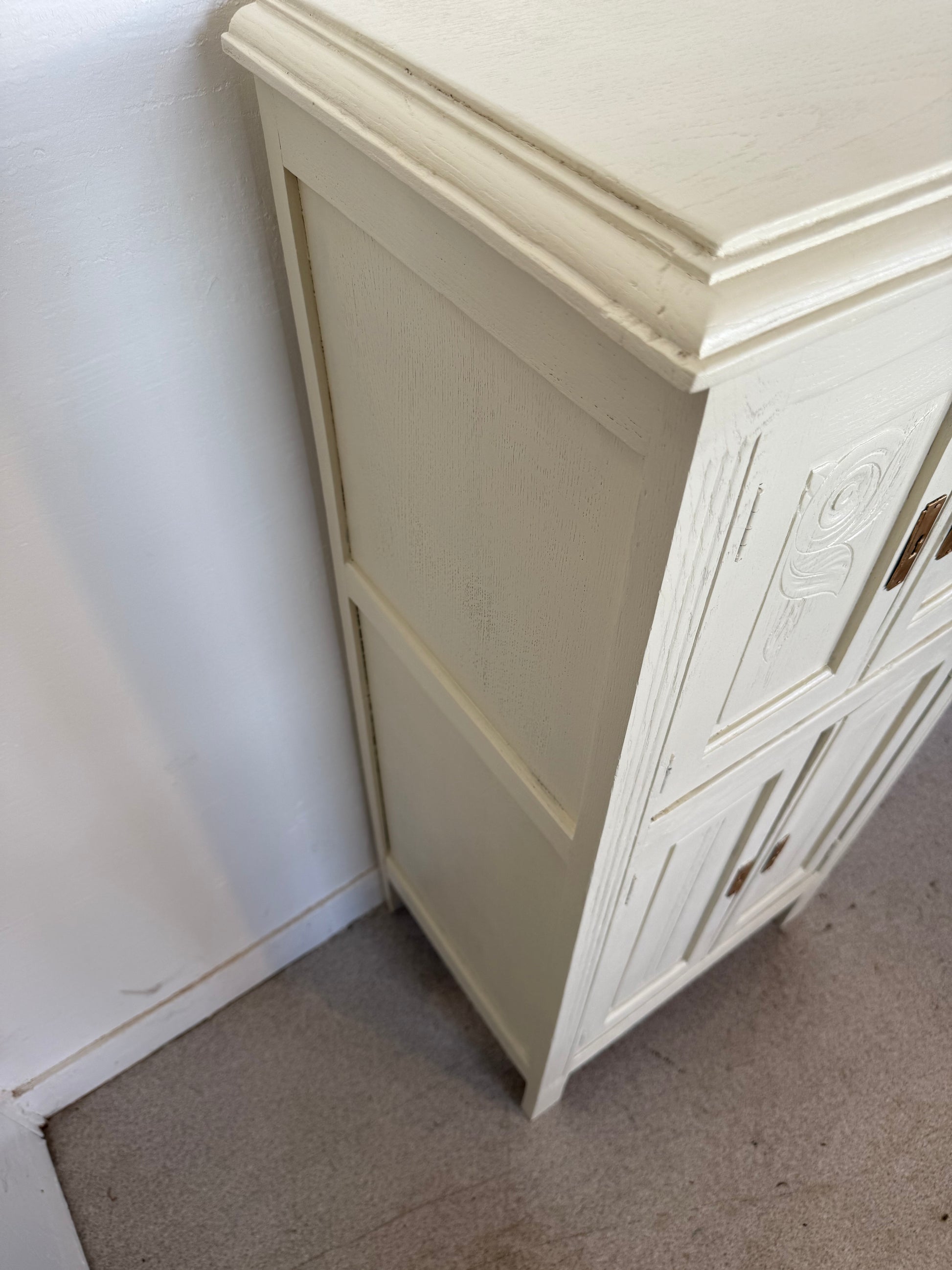 Le meuble a été entièrement poncé, peint dans un blanc crème d’une peinture qualitative (A+ anovabois) et l’intérieur nettoyé et nourri