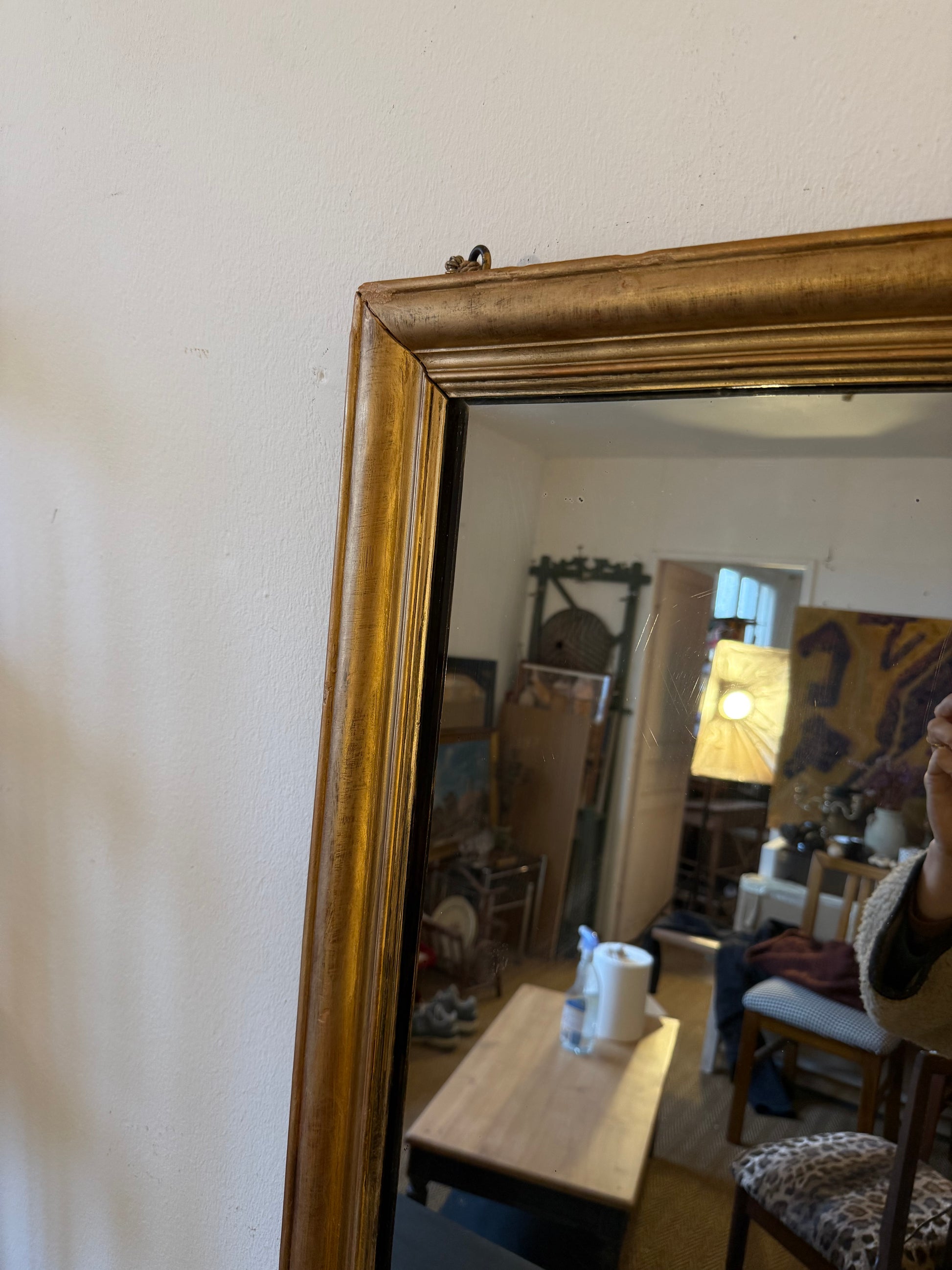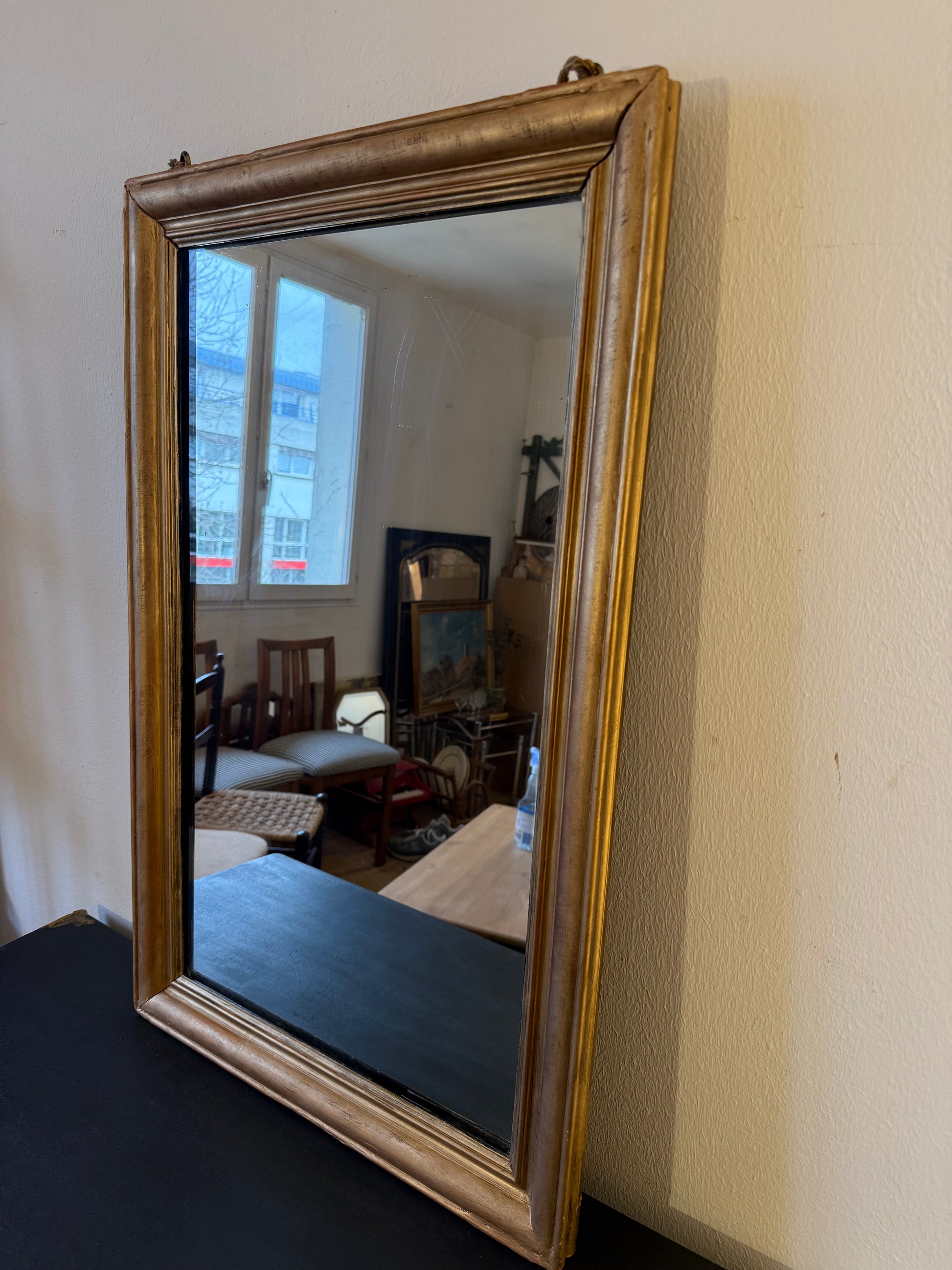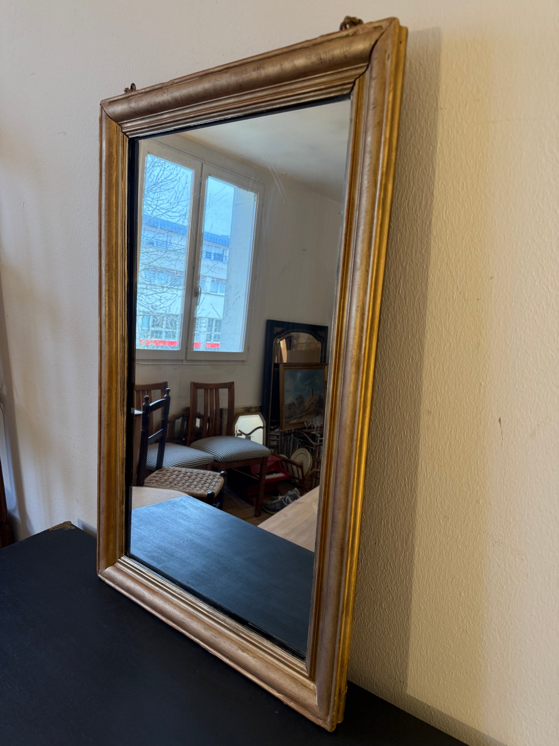 Miroir ancien en bois rectangulaire doré