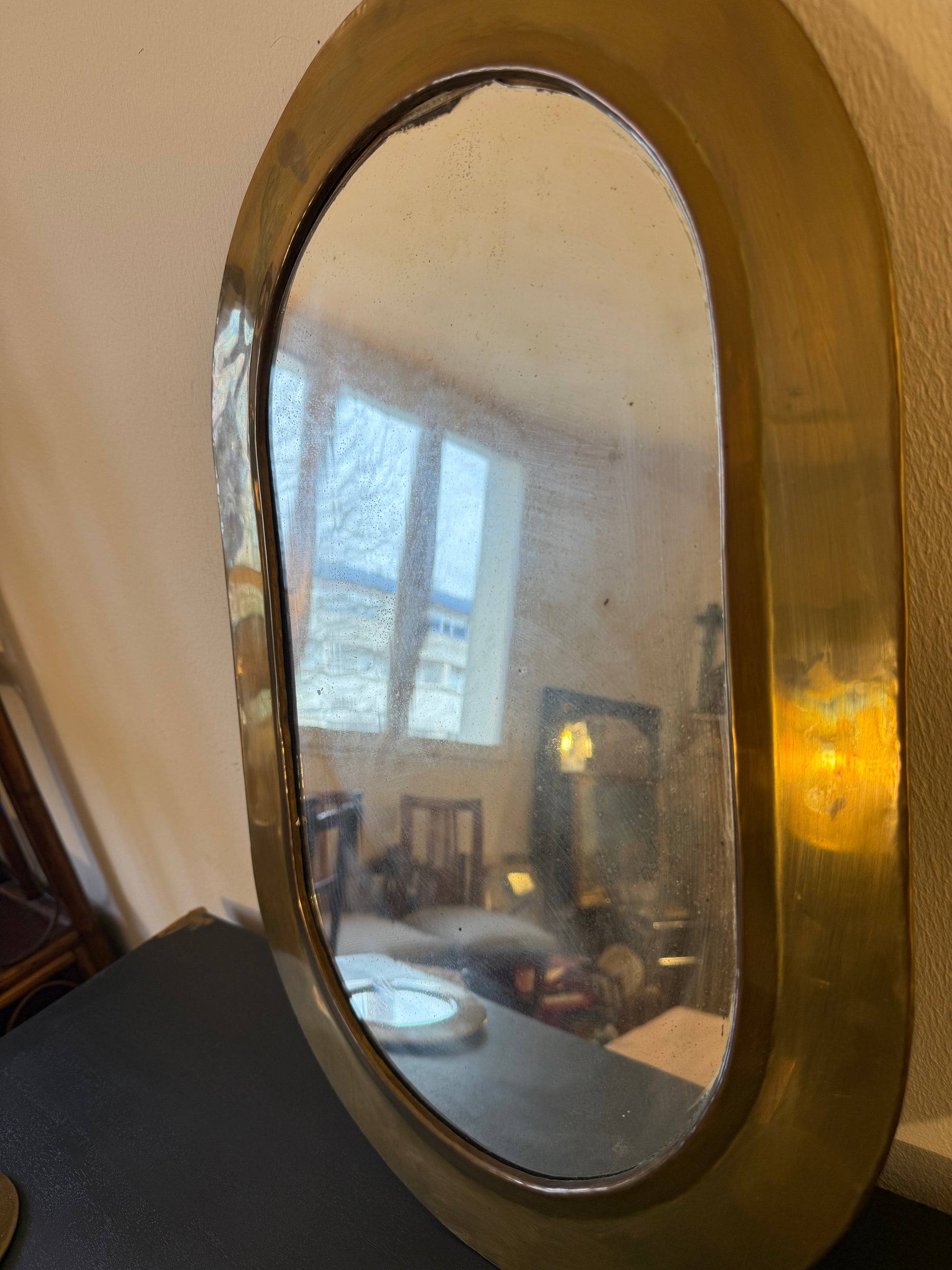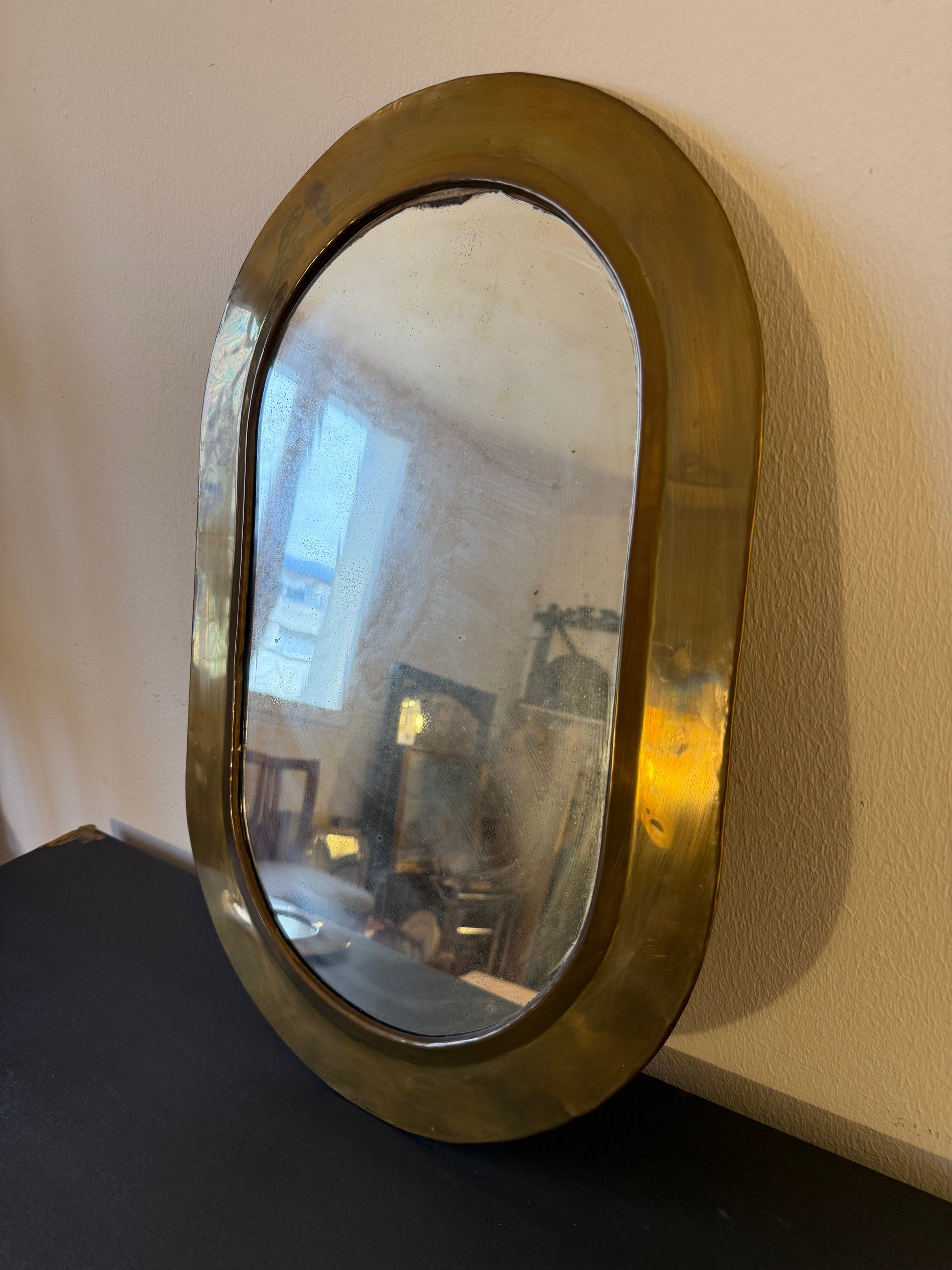 Miroir en laiton doré ancien (artisanat égyptien)