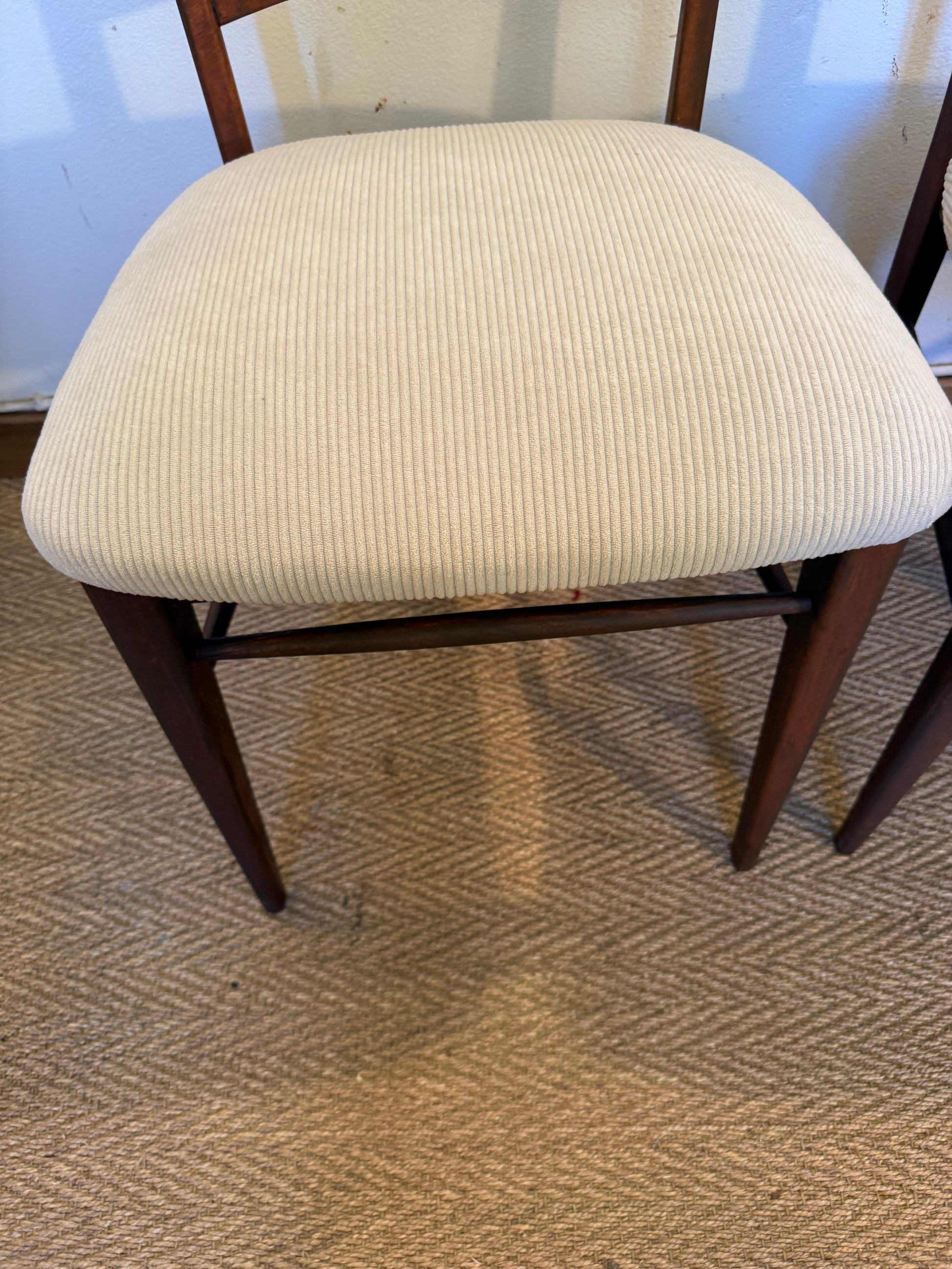 Jolie paire de chaises vintage en bois et velours côtelé beige