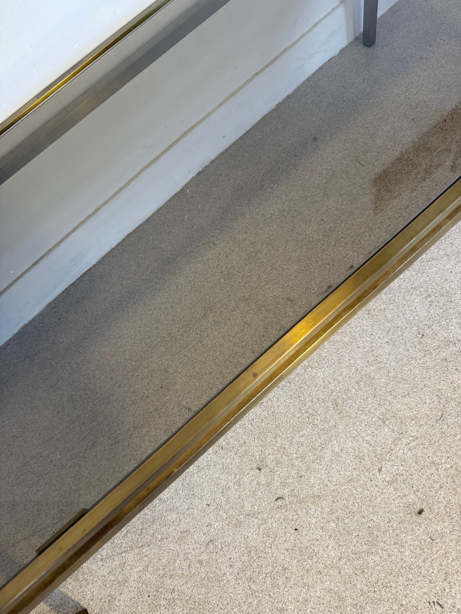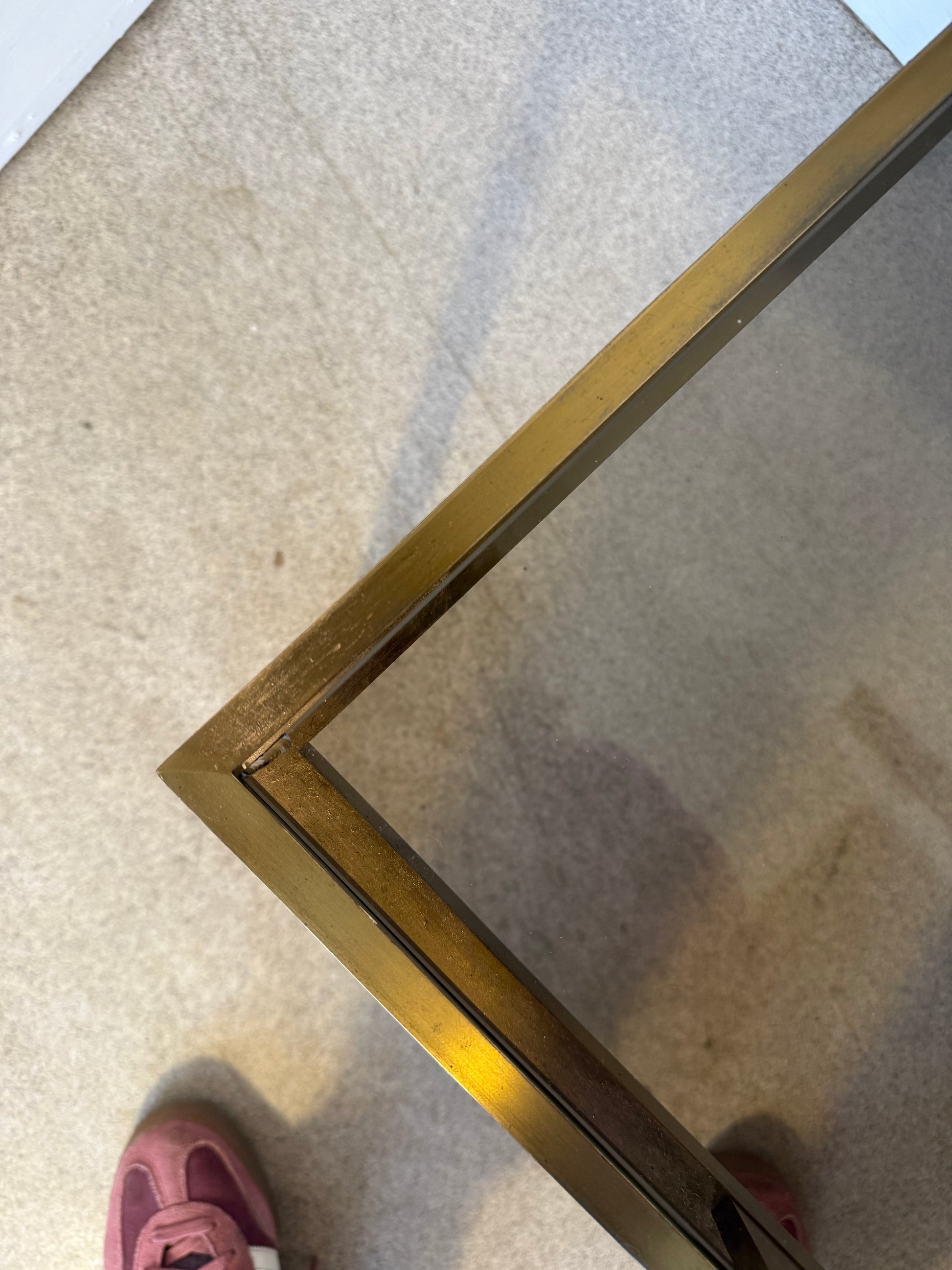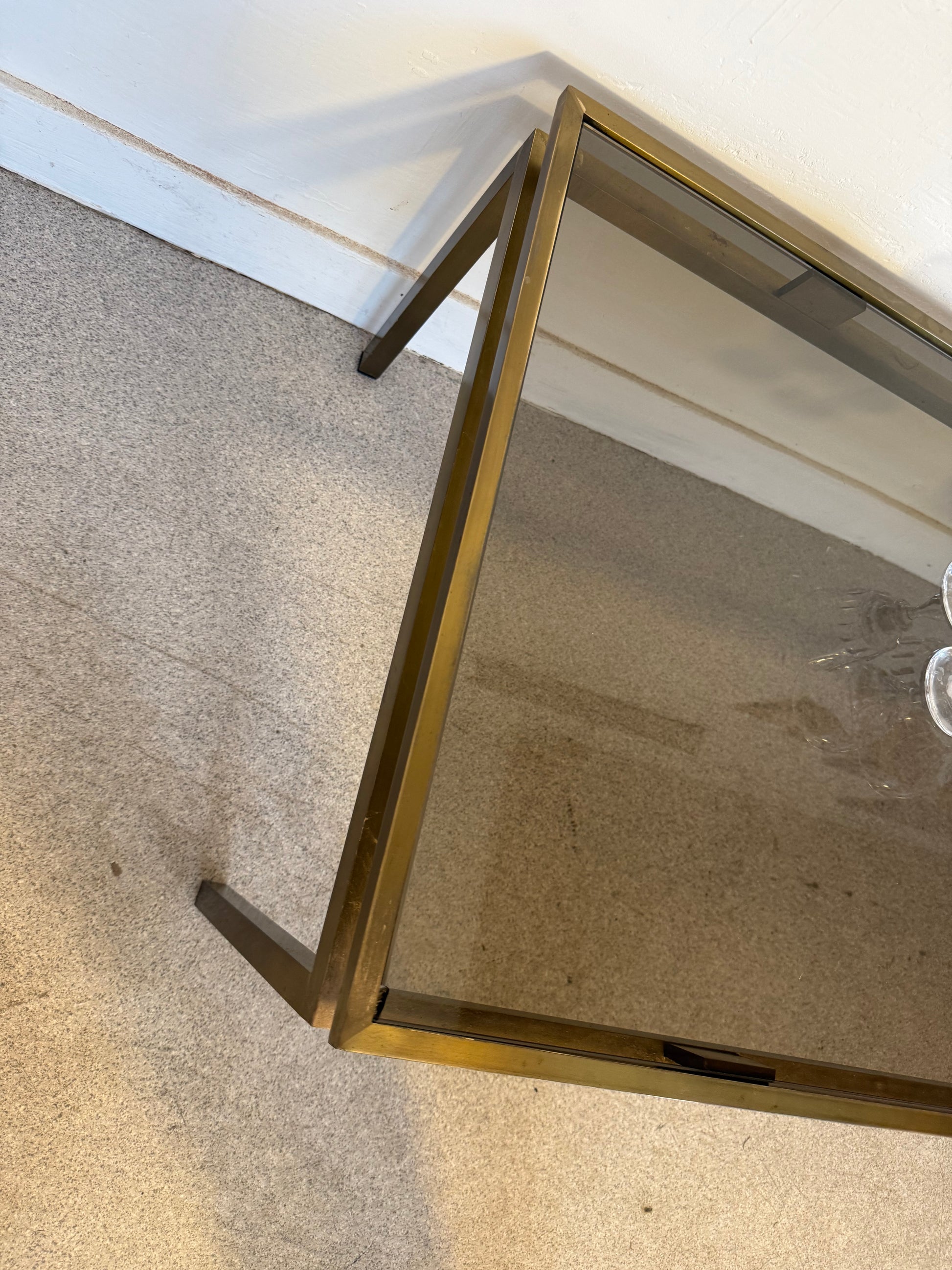 Table basse vintage laiton doré et verre fumé