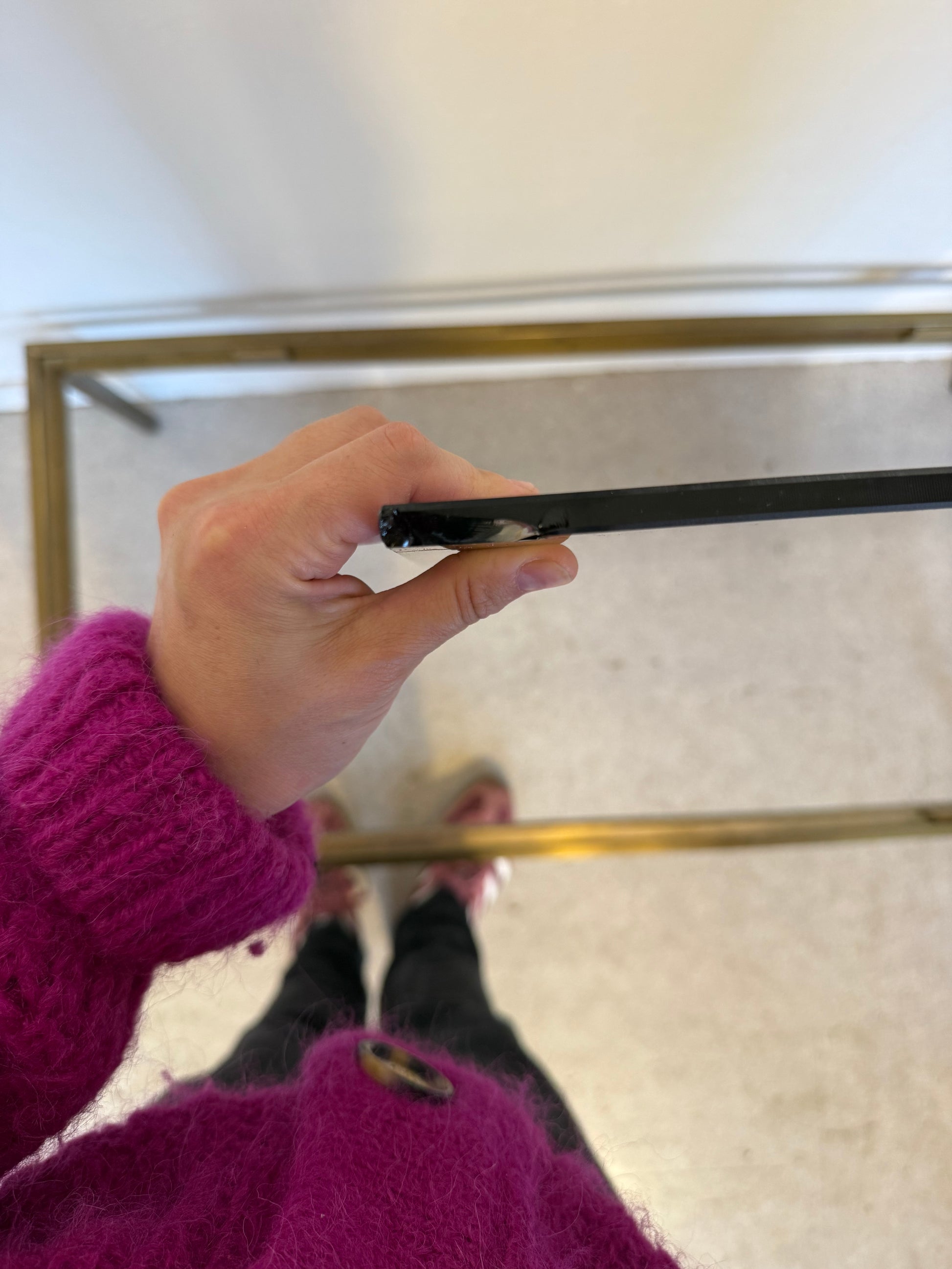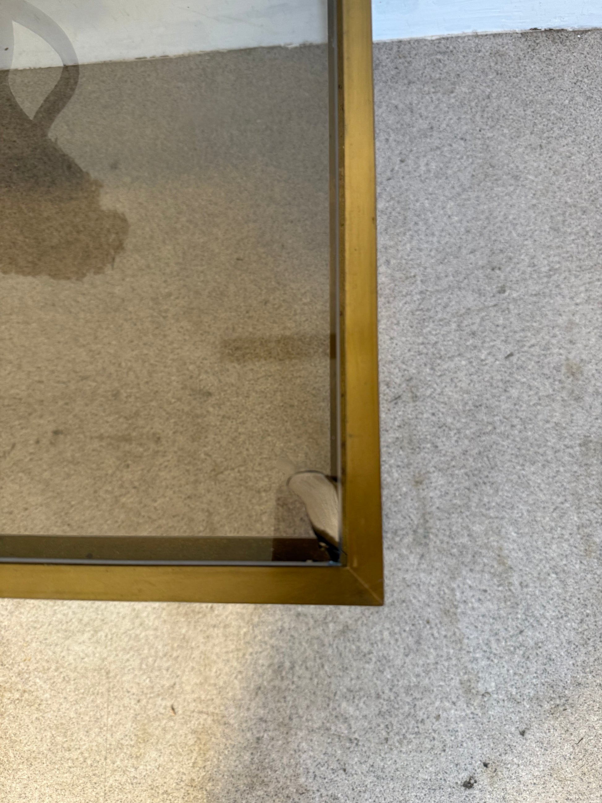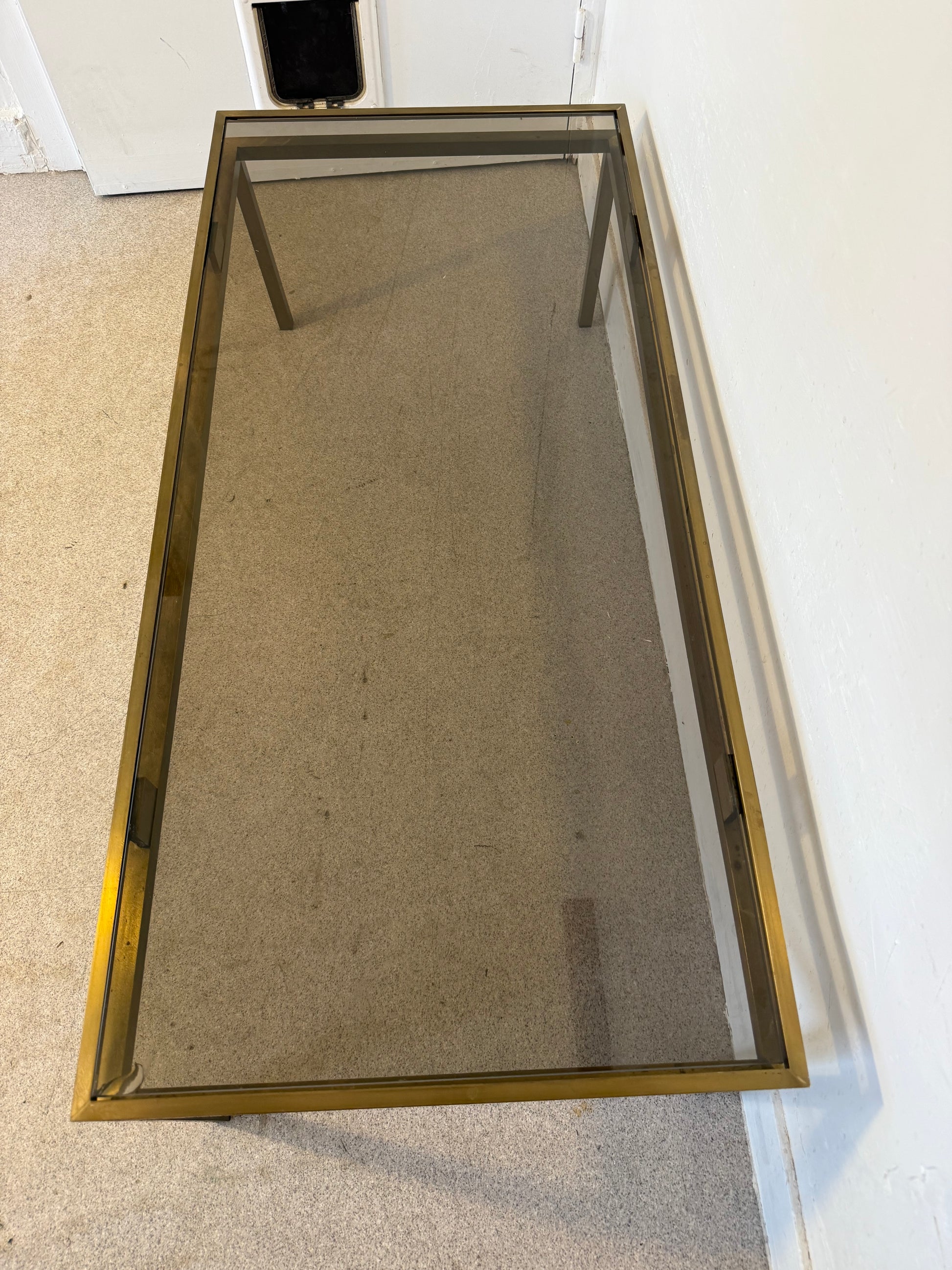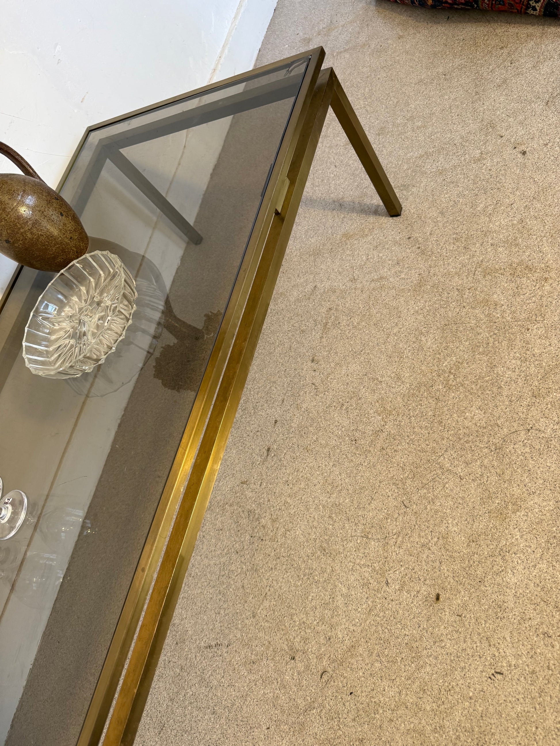 Table basse vintage laiton doré et verre fumé